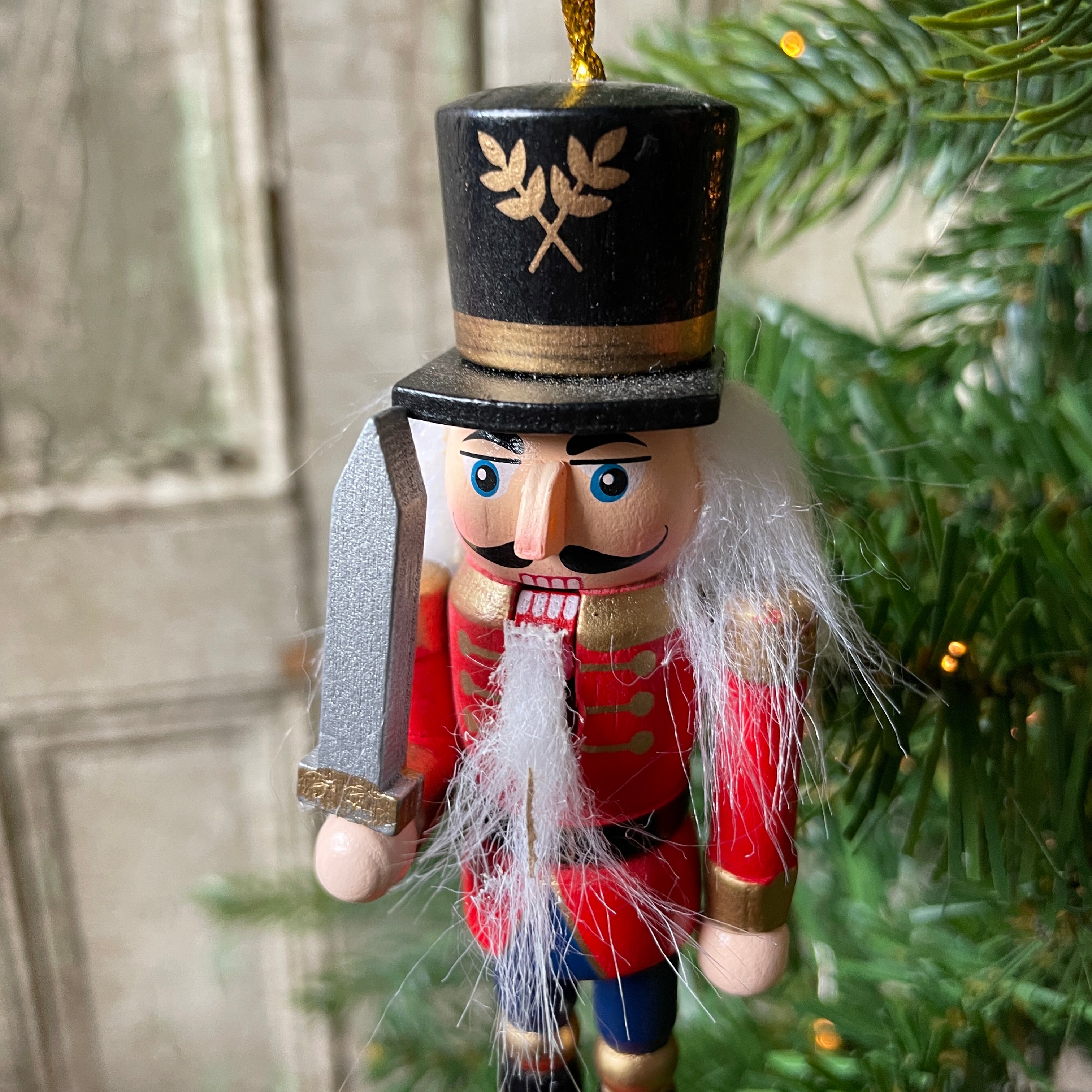 Hanging Dec - Traditional Nutcracker gives the Christmas favourite a contemporary update. The hand painted wooden piece is crafted from wood and has a moving parts for a theatrical touch