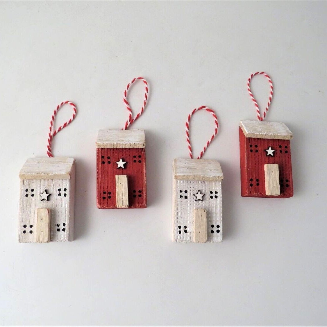 Made of hand painted wood, and finished with a little wooden star. Choose between Red and White.