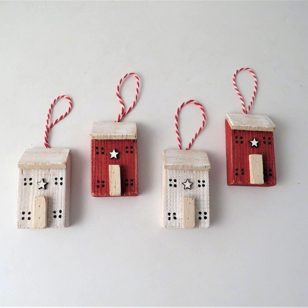 Hanging Tree Dec - Wood House - super folky, this little wooden house will add instant charm to your christmas tree.