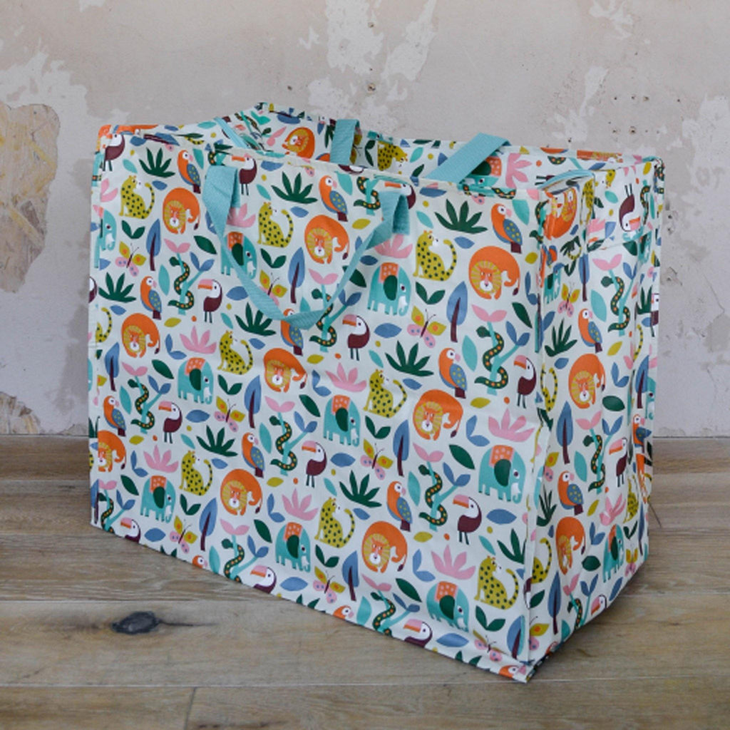Made from recycled plastic bottles with metal zip fastening and woven nylon handles. The jumbo storage bags measures: Length: 55 cm, Width: 28 cm, Height: 48 cm