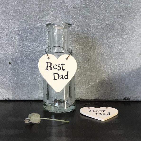 Make your gift extra special and thoughtful with these little heart sentiments. Made from cream painted wood, with grey font, each heart hangs from a metal wire hoop, and measures: 3 x 5.5cm.