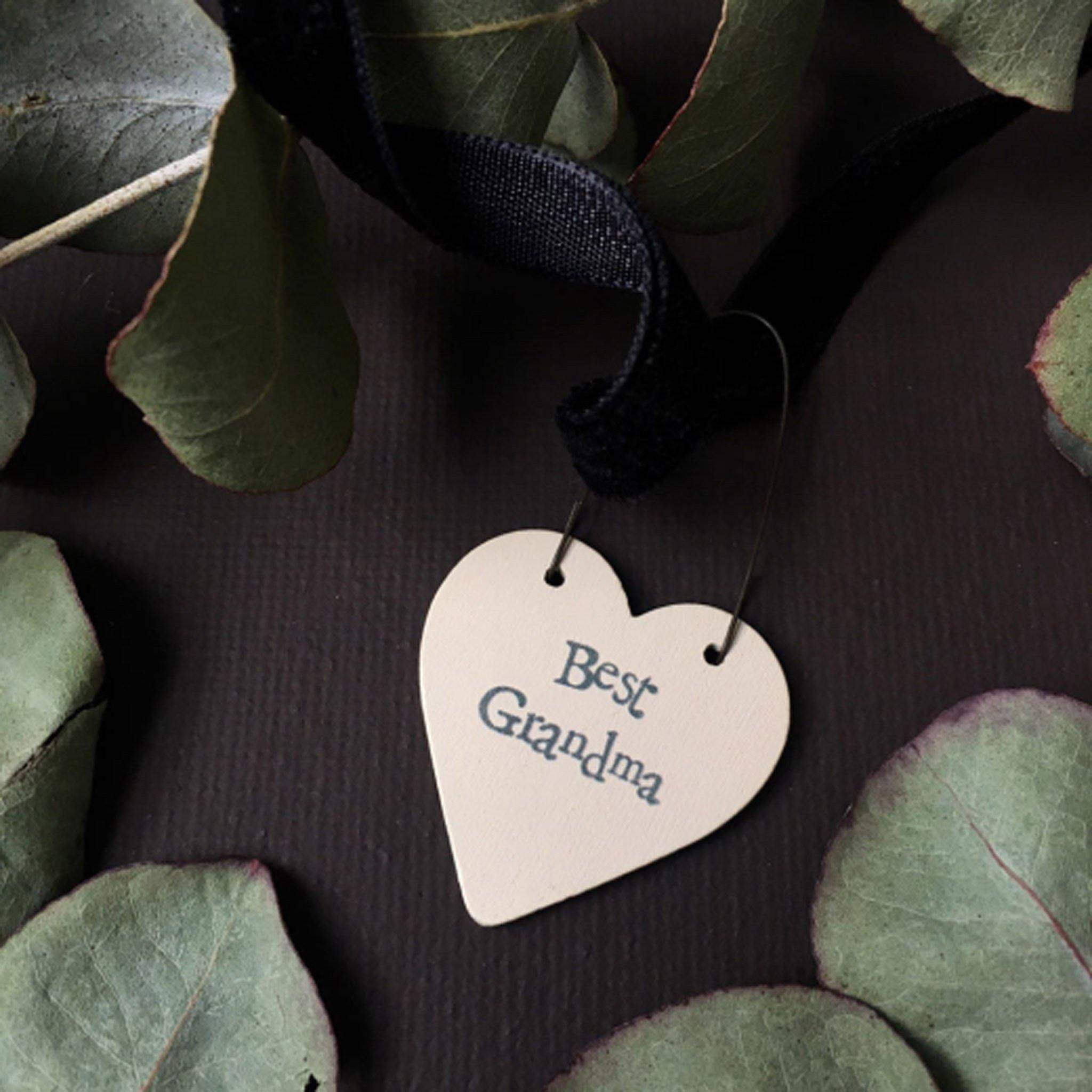 Make your gift extra special and thoughtful with these little heart sentiments. Made from cream painted wood, with grey font, each heart hangs from a metal wire hoop, and measures: 3 x 5.5cm.