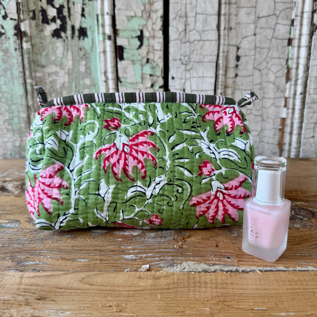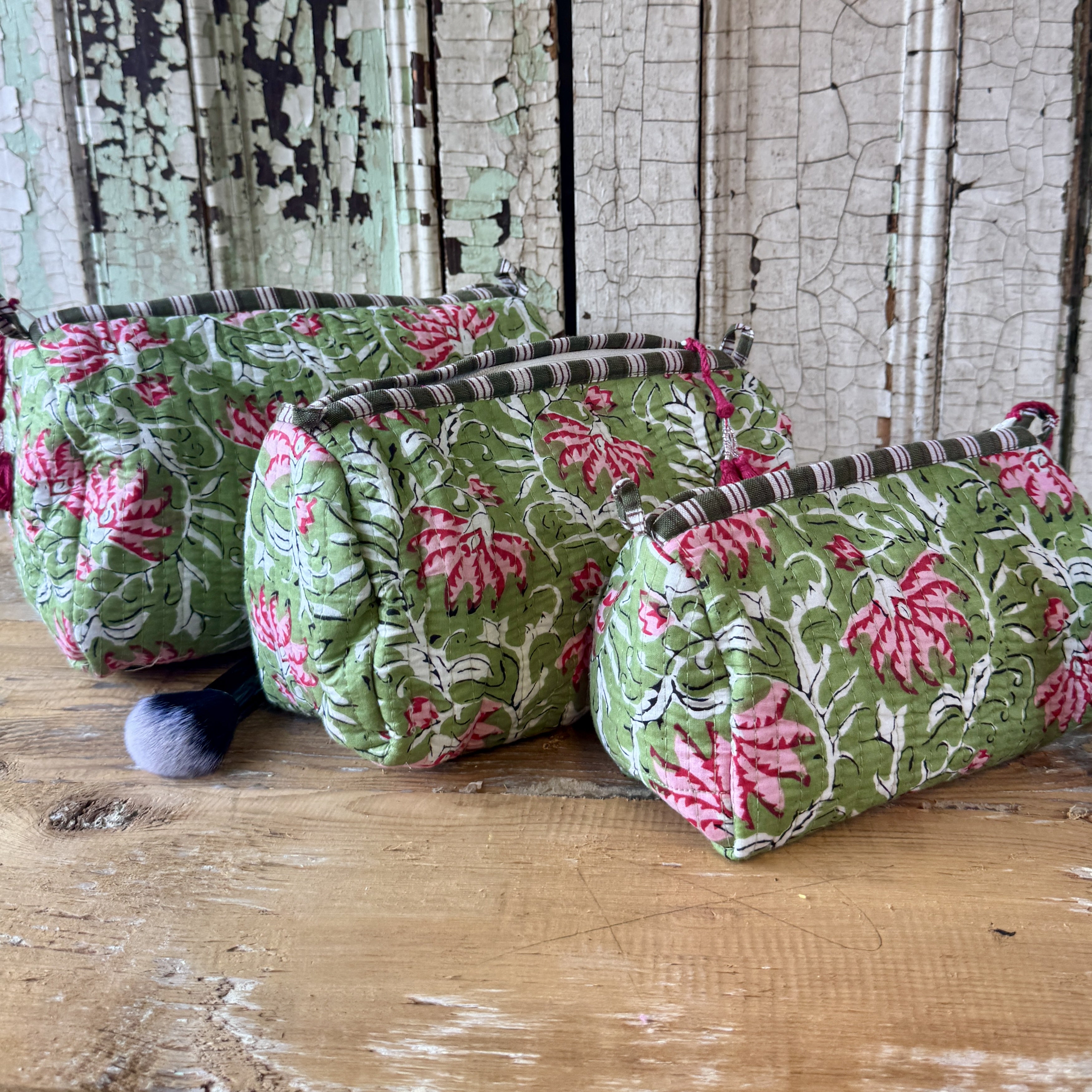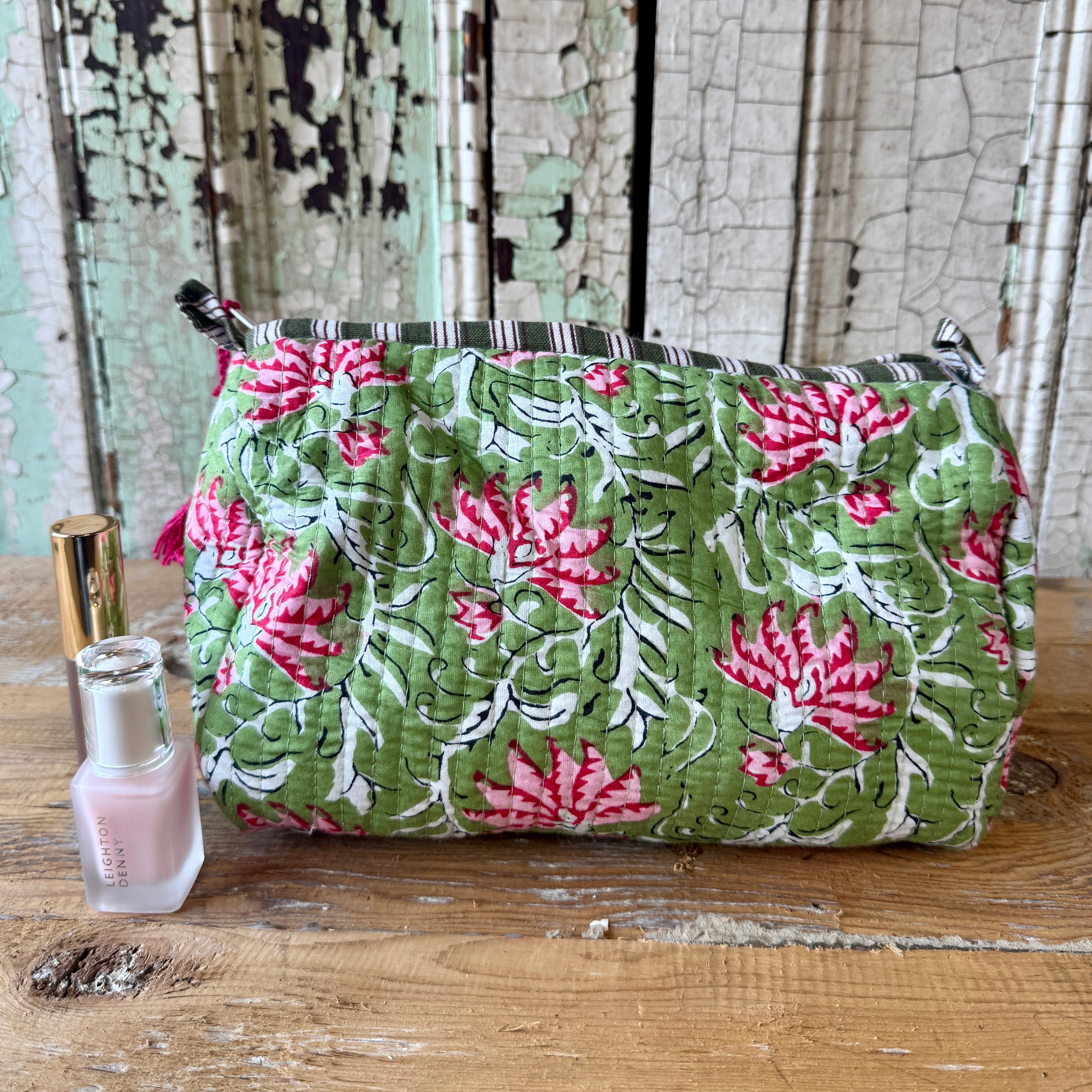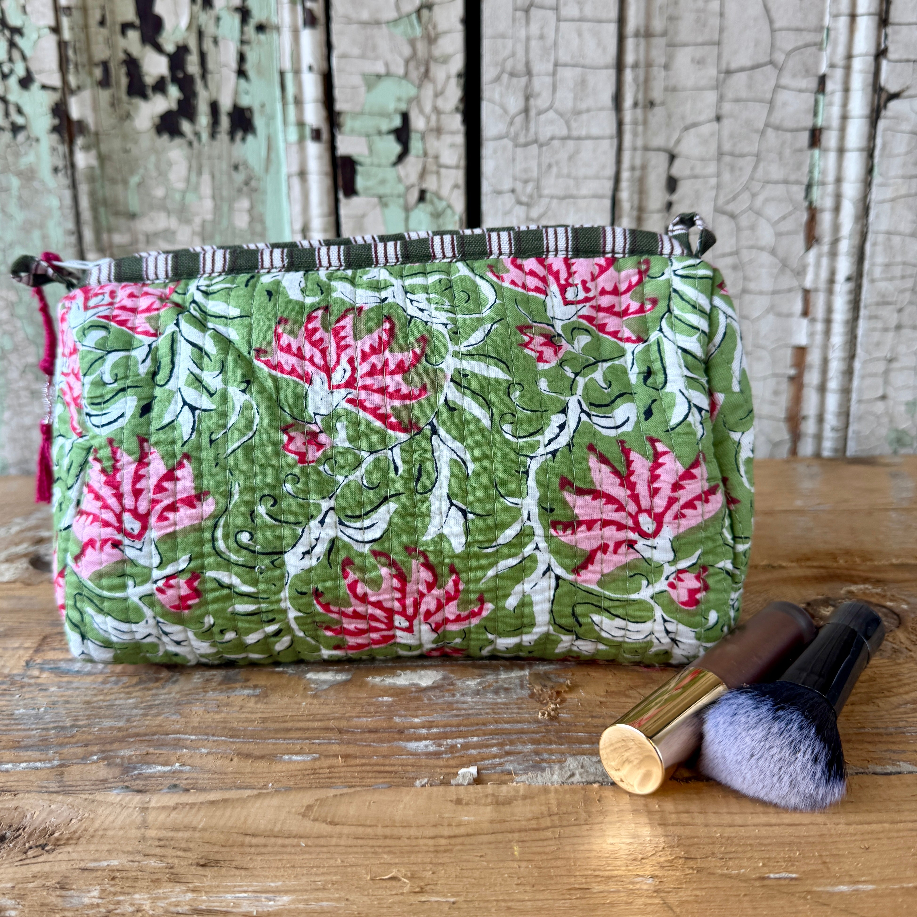 Made from premium quilted cotton, it offers a soft, elegant appearance. The interior is lined with a moisture-resistant material to shield contents from spills and dampness. Compact and lightweight, it fits easily into handbags or suitcases. Available in small, medium, and large sizes.