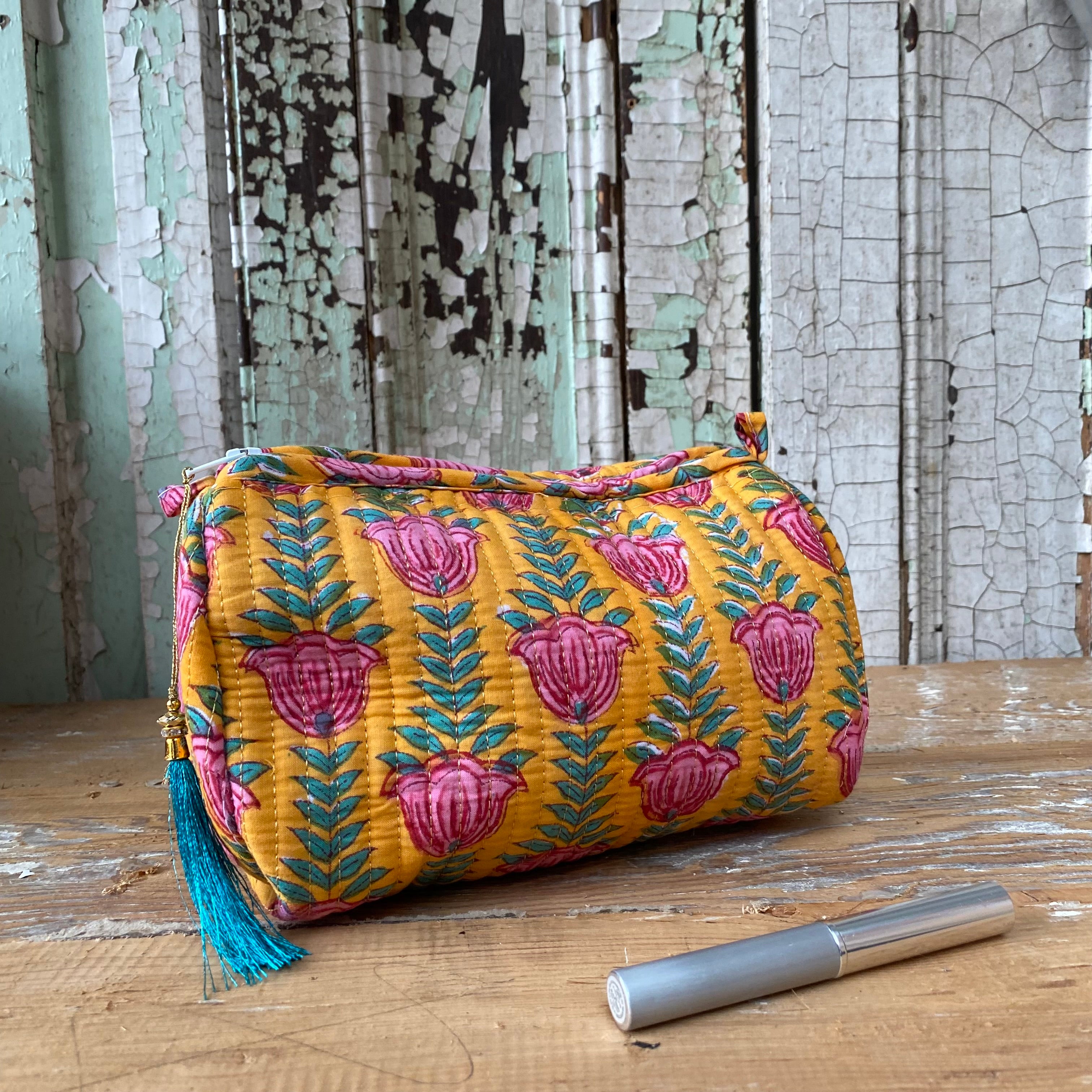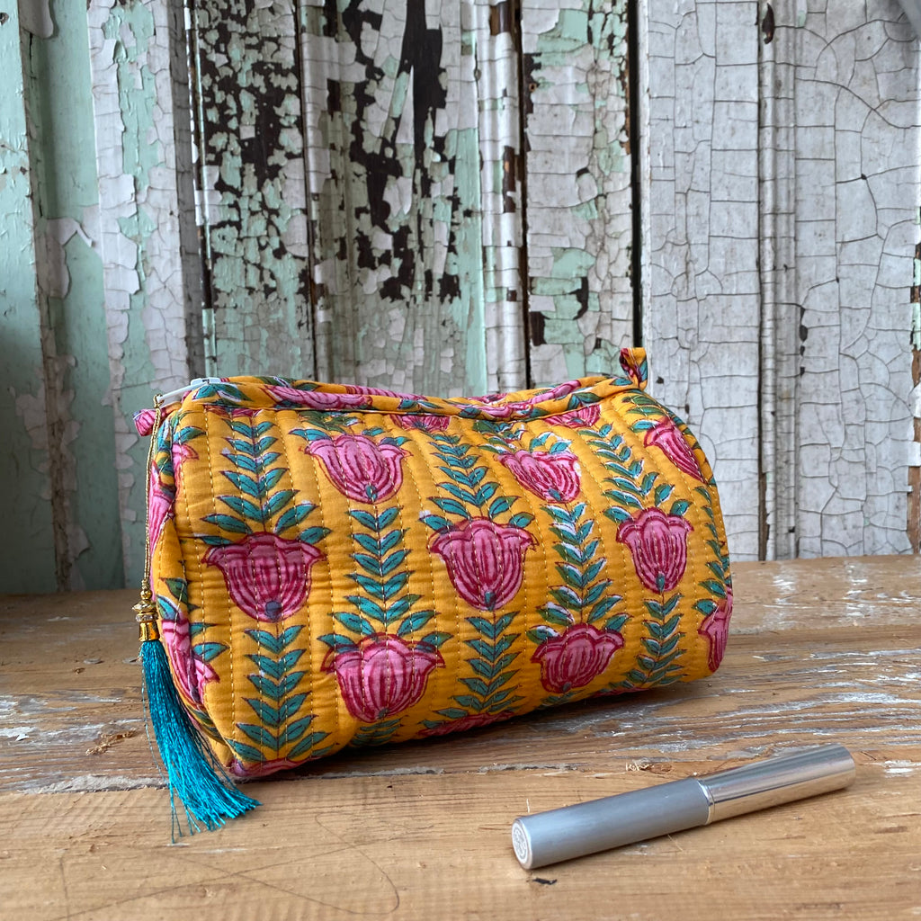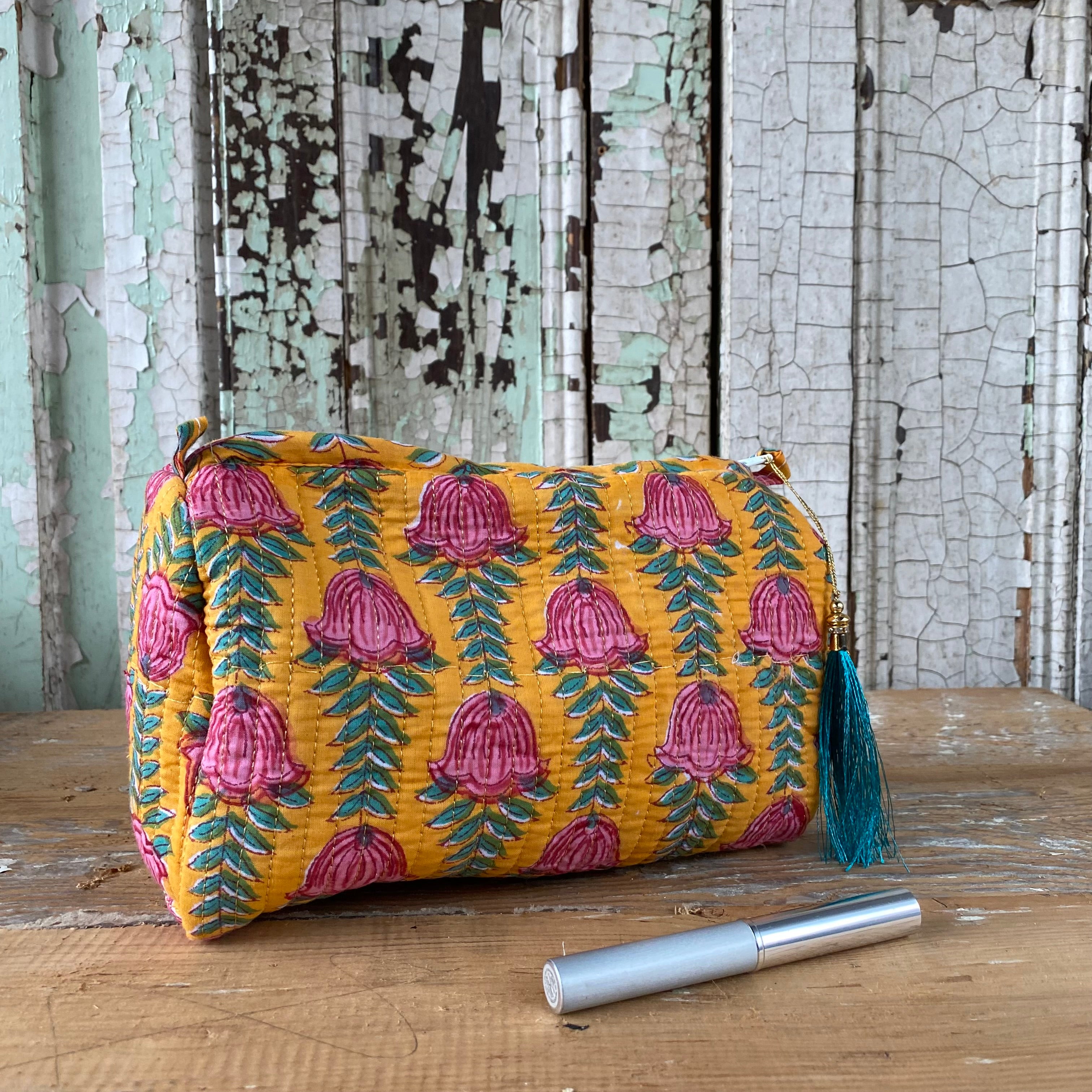 Make Up Bag - Orange & Pink Tulip, Avail. in 3 Sizes