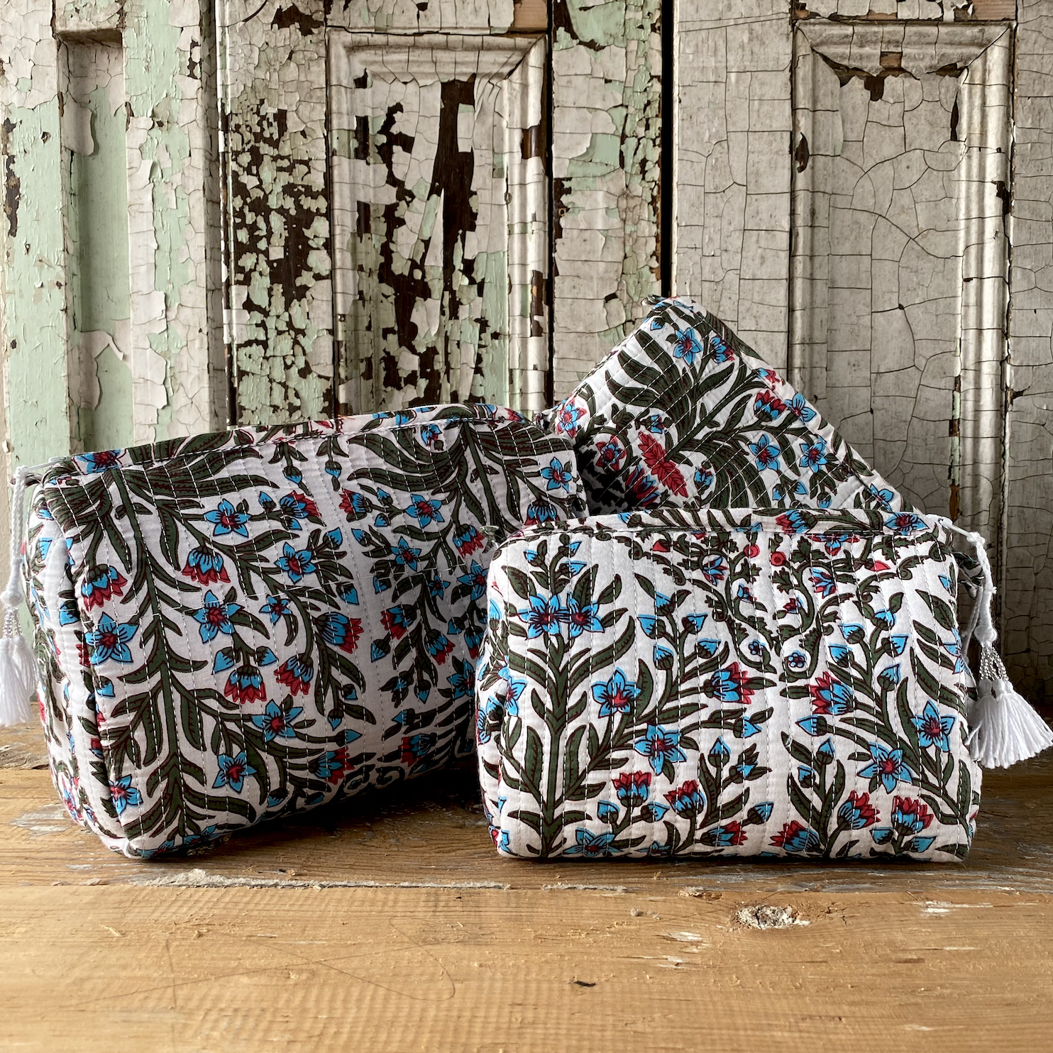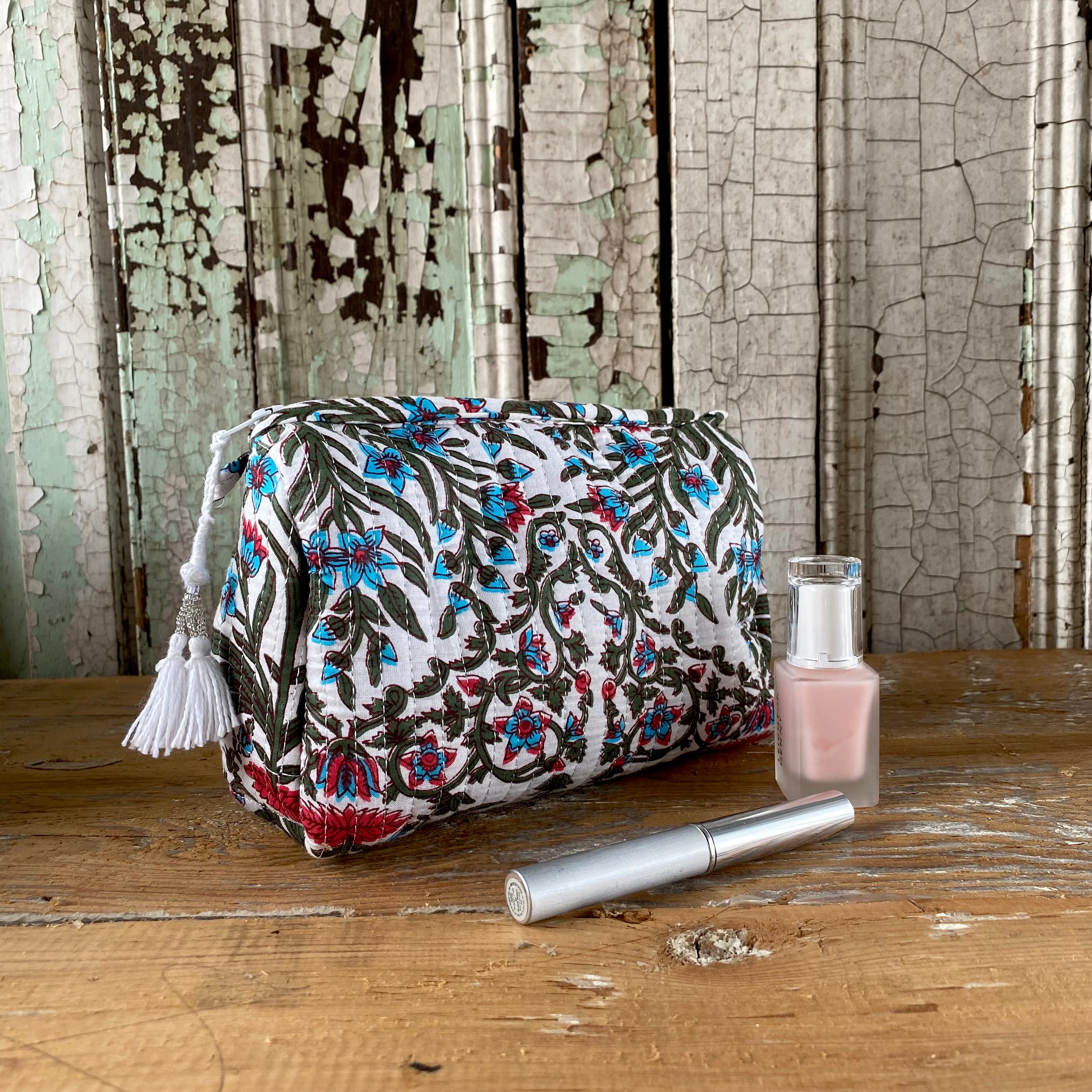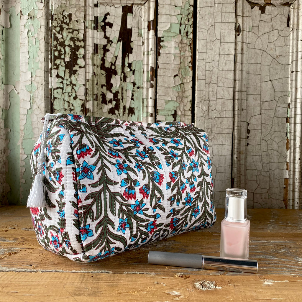 Each quilted piece individually unique, made using traditional block printing in India.