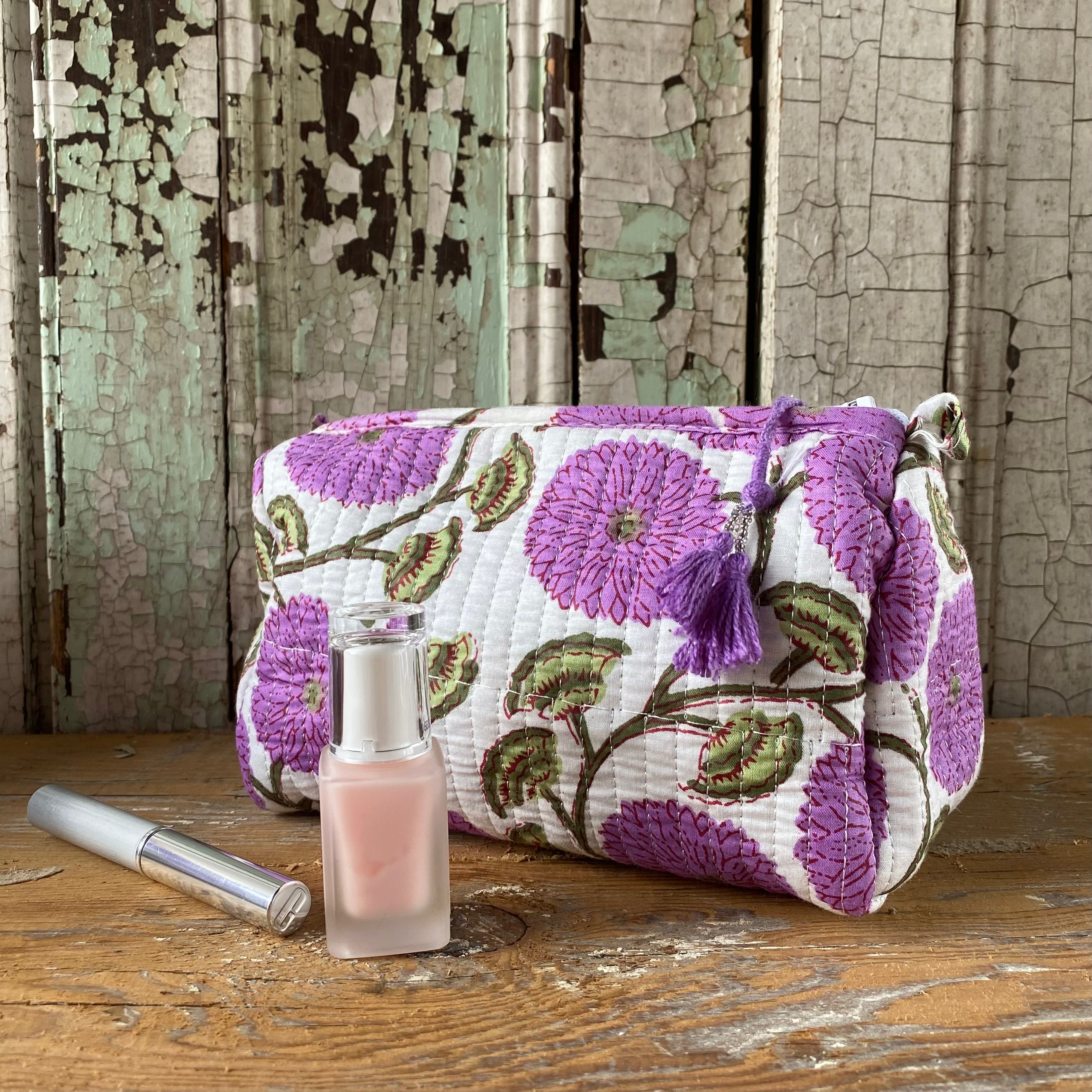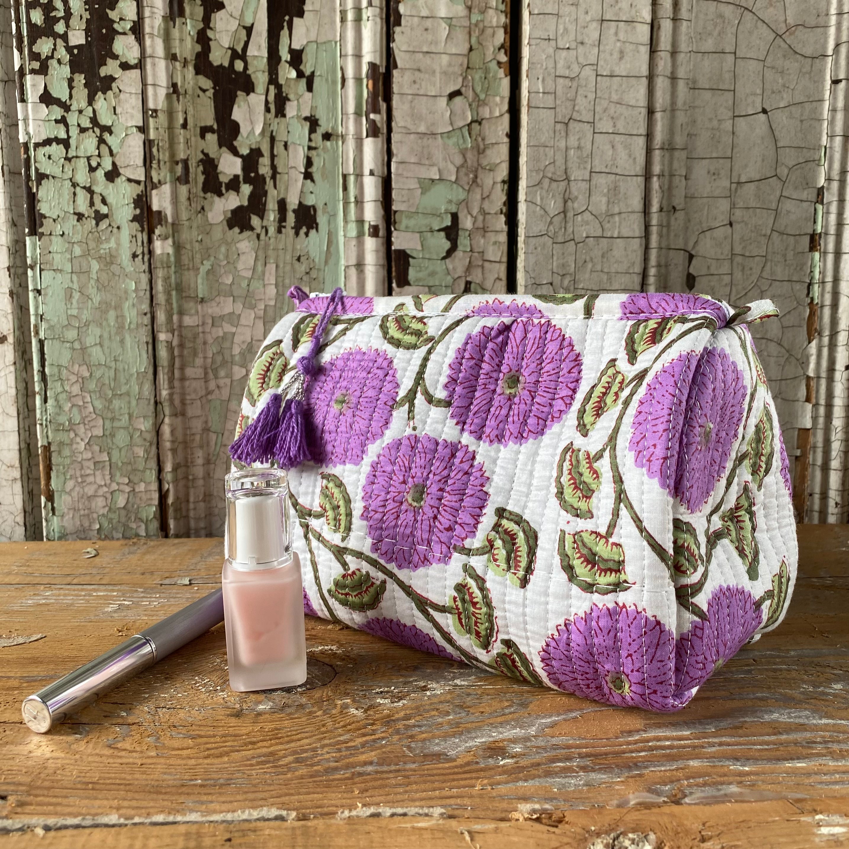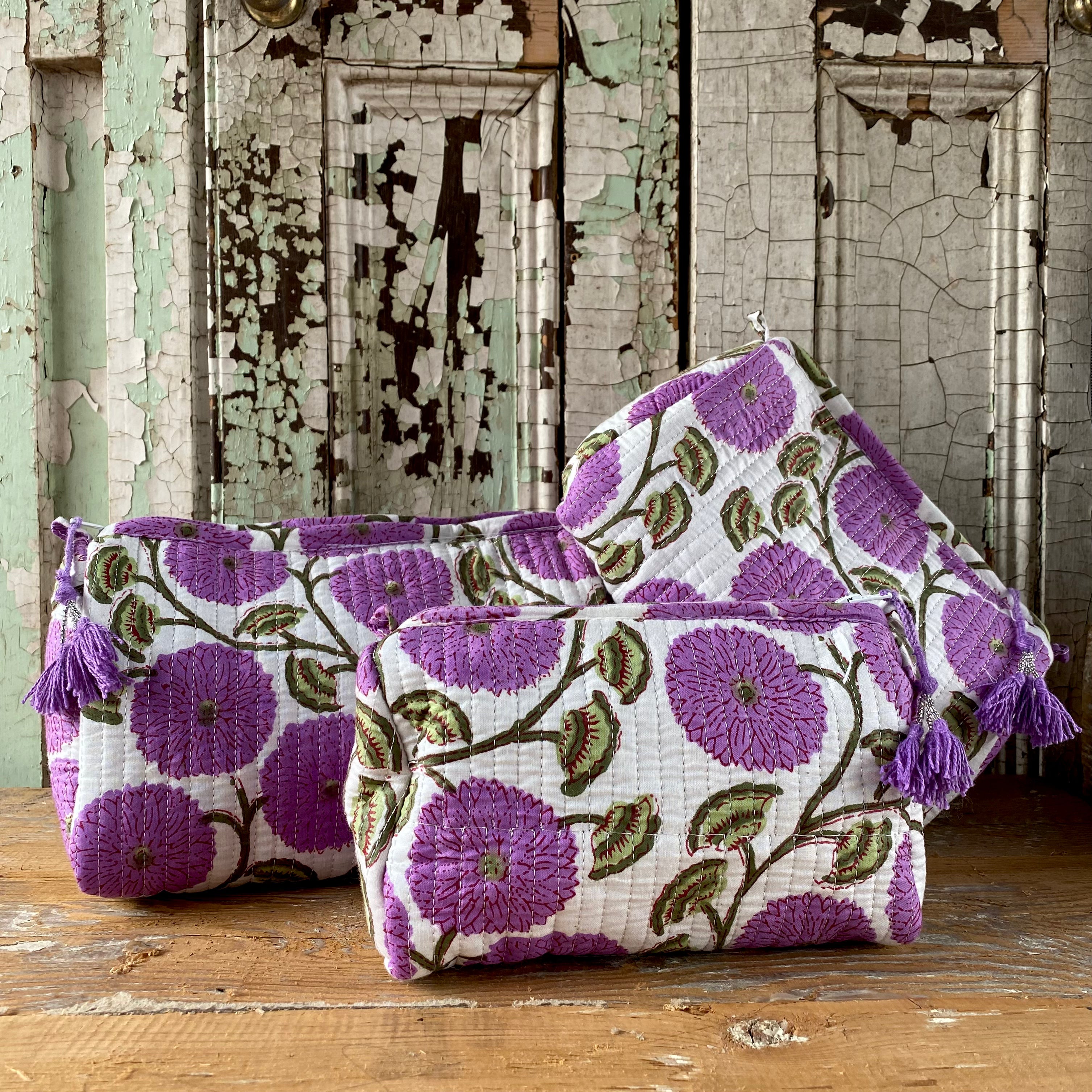 Each quilted piece individually unique, made using traditional block printing in India.