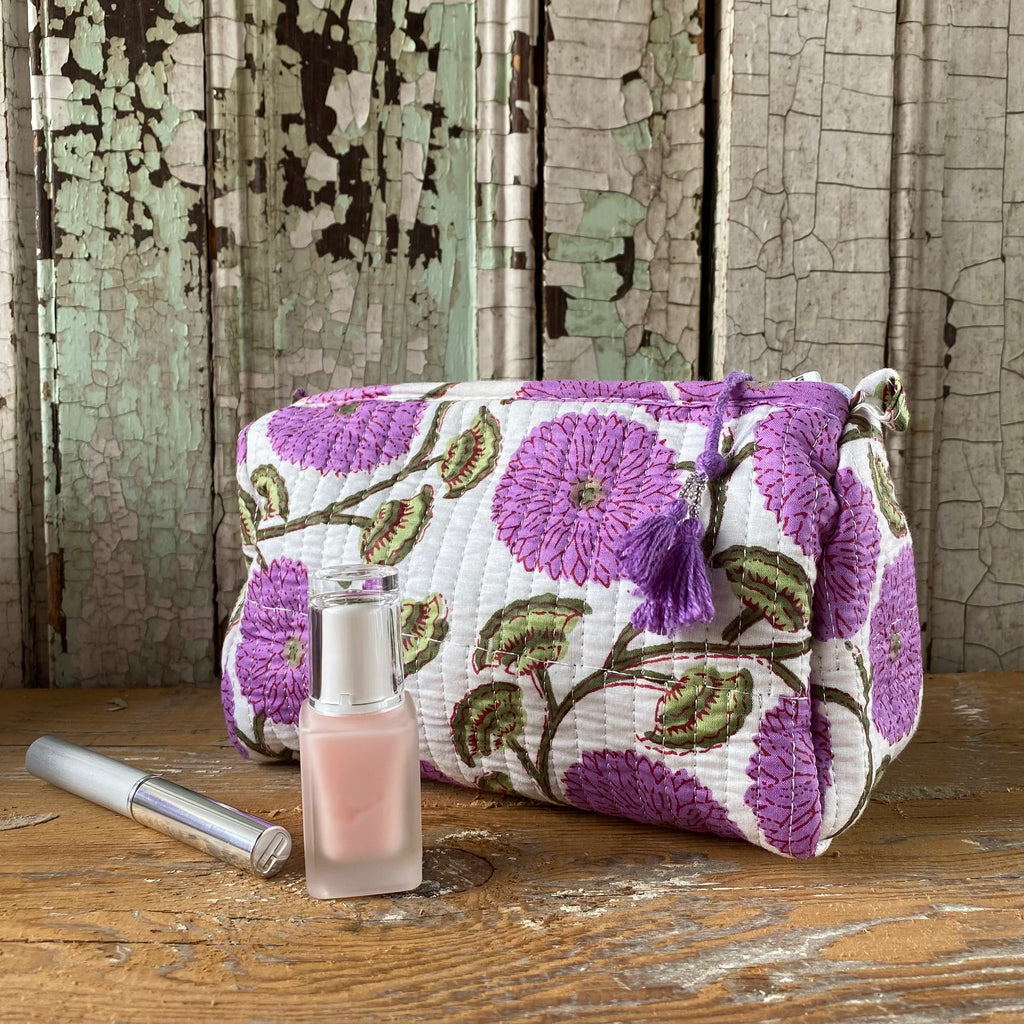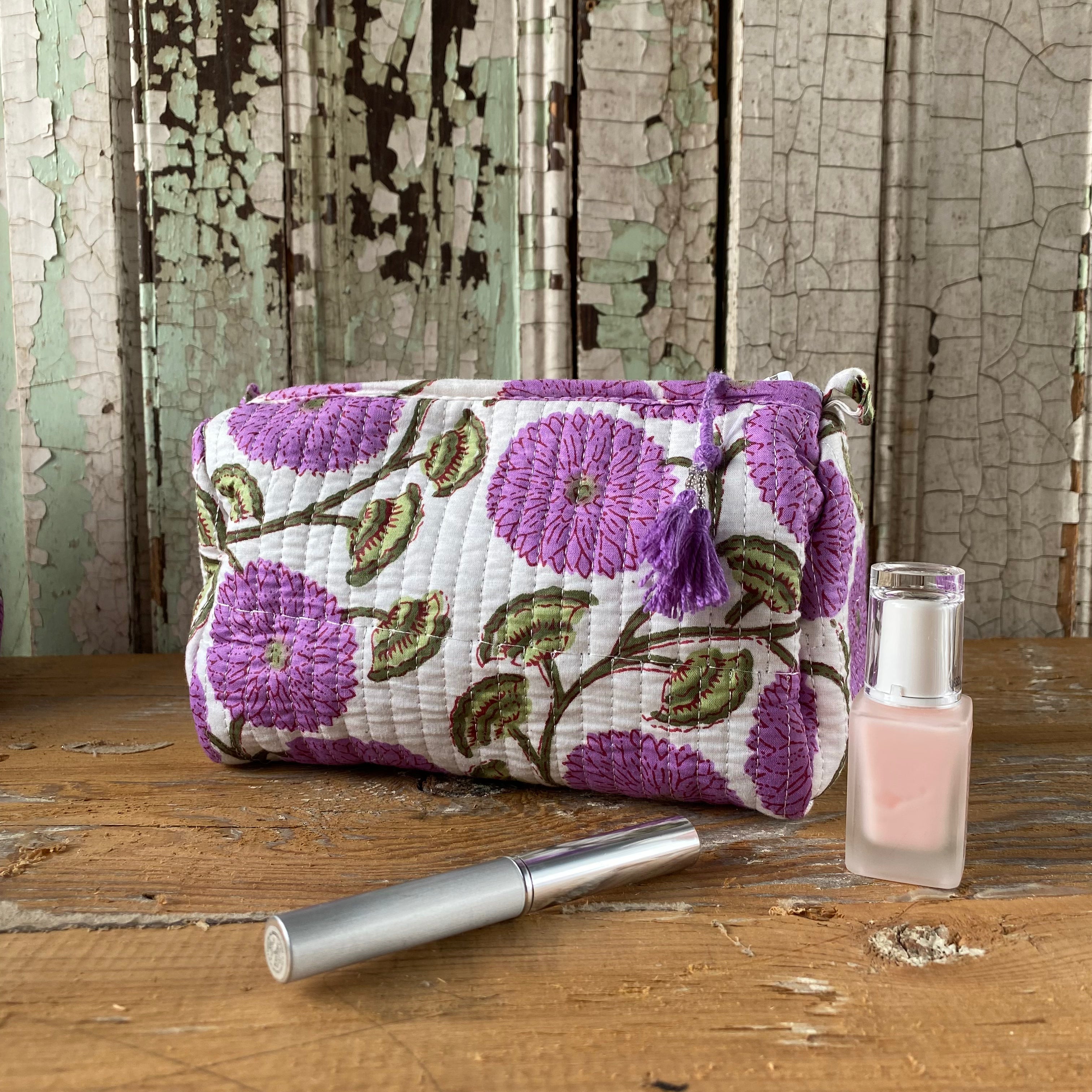 Make Up Bag - White w Purple Flowers, Avail. in 3 Sizes