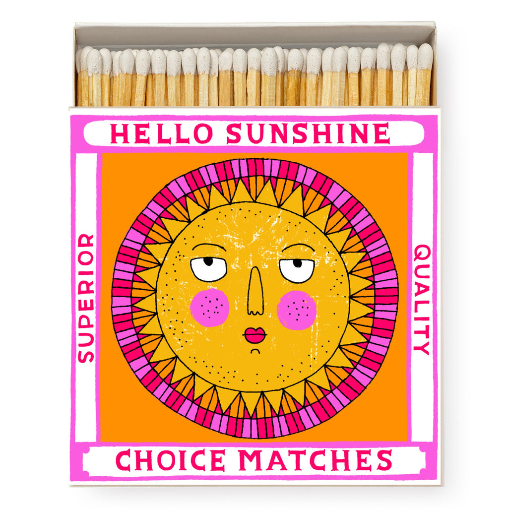 The Hello Sunshine matchbox measures 11cm square, and contain approx. 125 matches with white tips. With its vibrant palette and bold design, this matchbox is bound to infuse your home with character and colour.