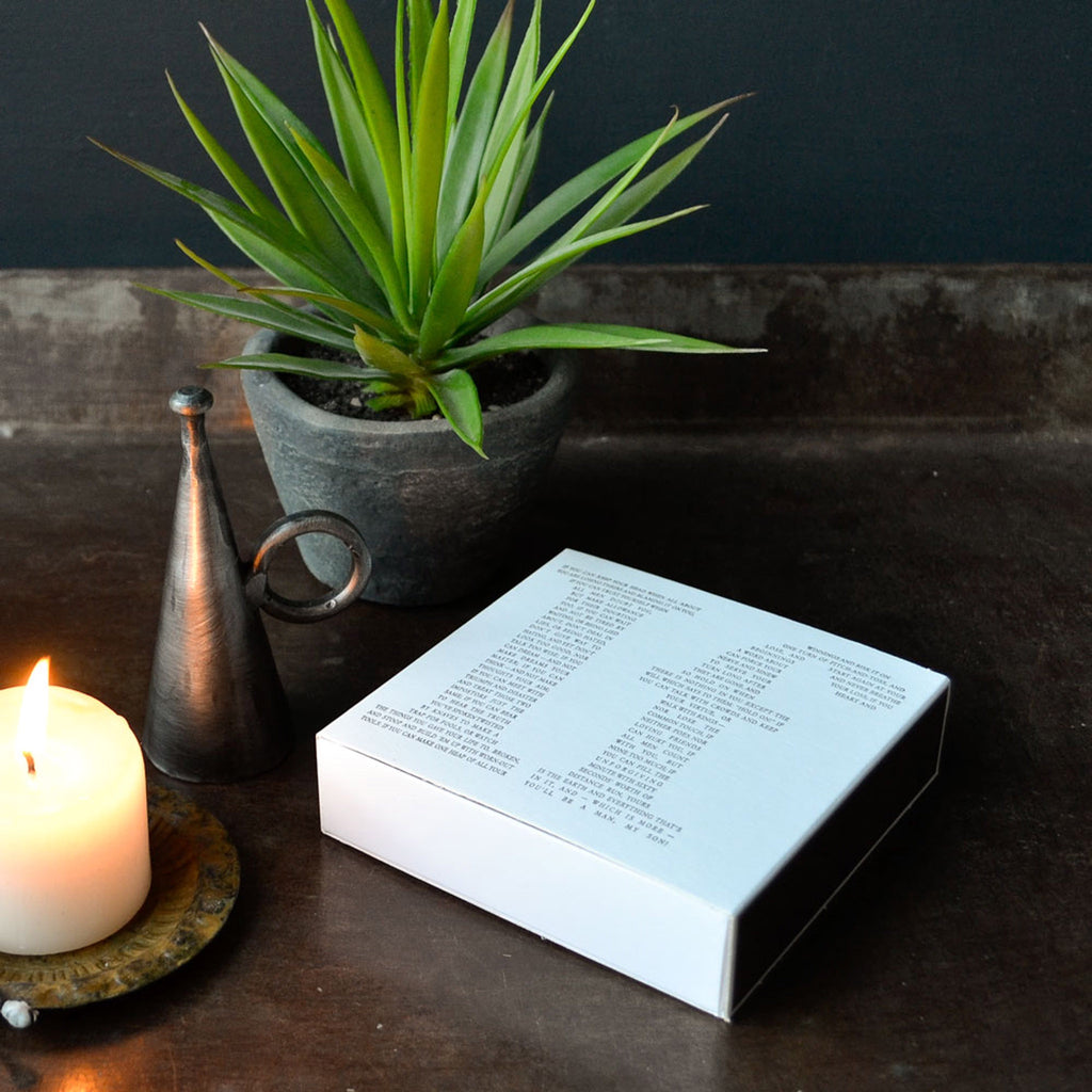 This matchbox is white with the poem If by Rudyard Kipling printed in black font. The If matchbox measures 11cm square, and contain approx. 125 matches.