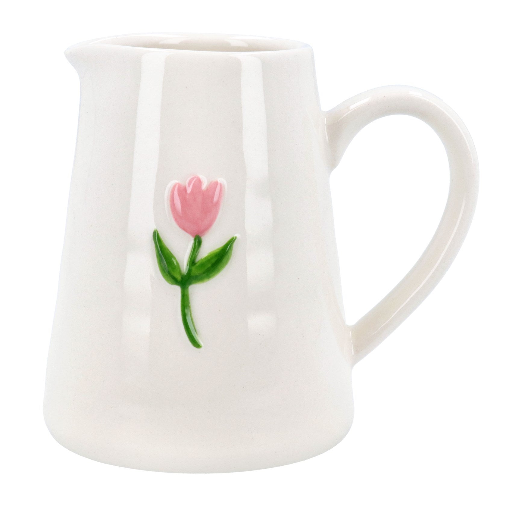 Delightful little jug with embossed and handpainted pink tulip image, perfect for a drop of milk!