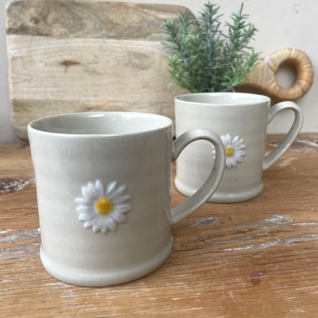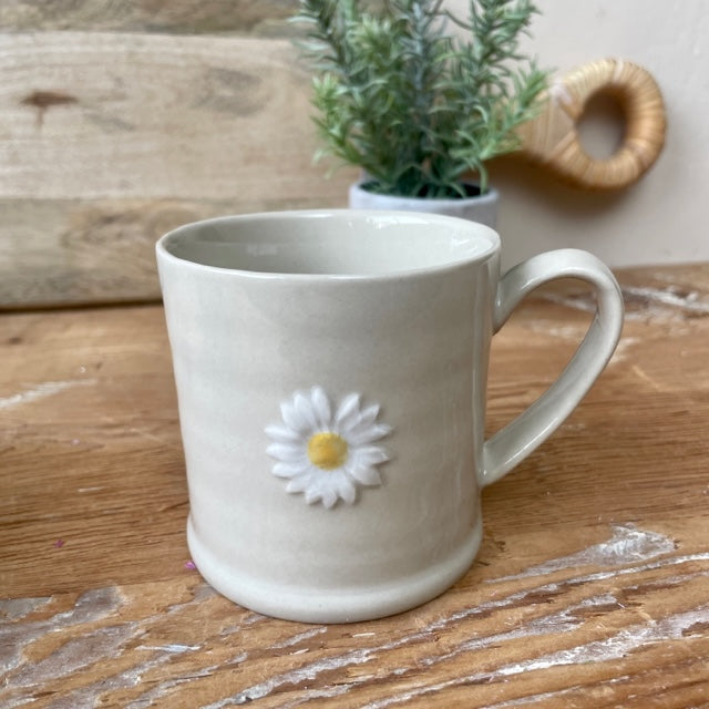 Delightful little mug with embossed and handpainted daisy image. The perfect mug for those that prefer a smaller cuppa' 100% Stoneware