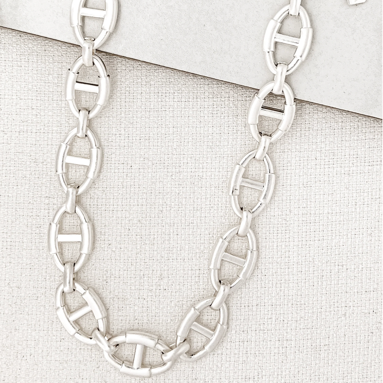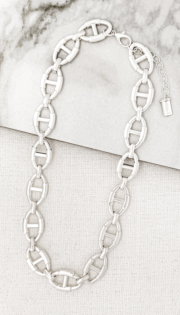 Necklace - Short Worn Silver Chain Link