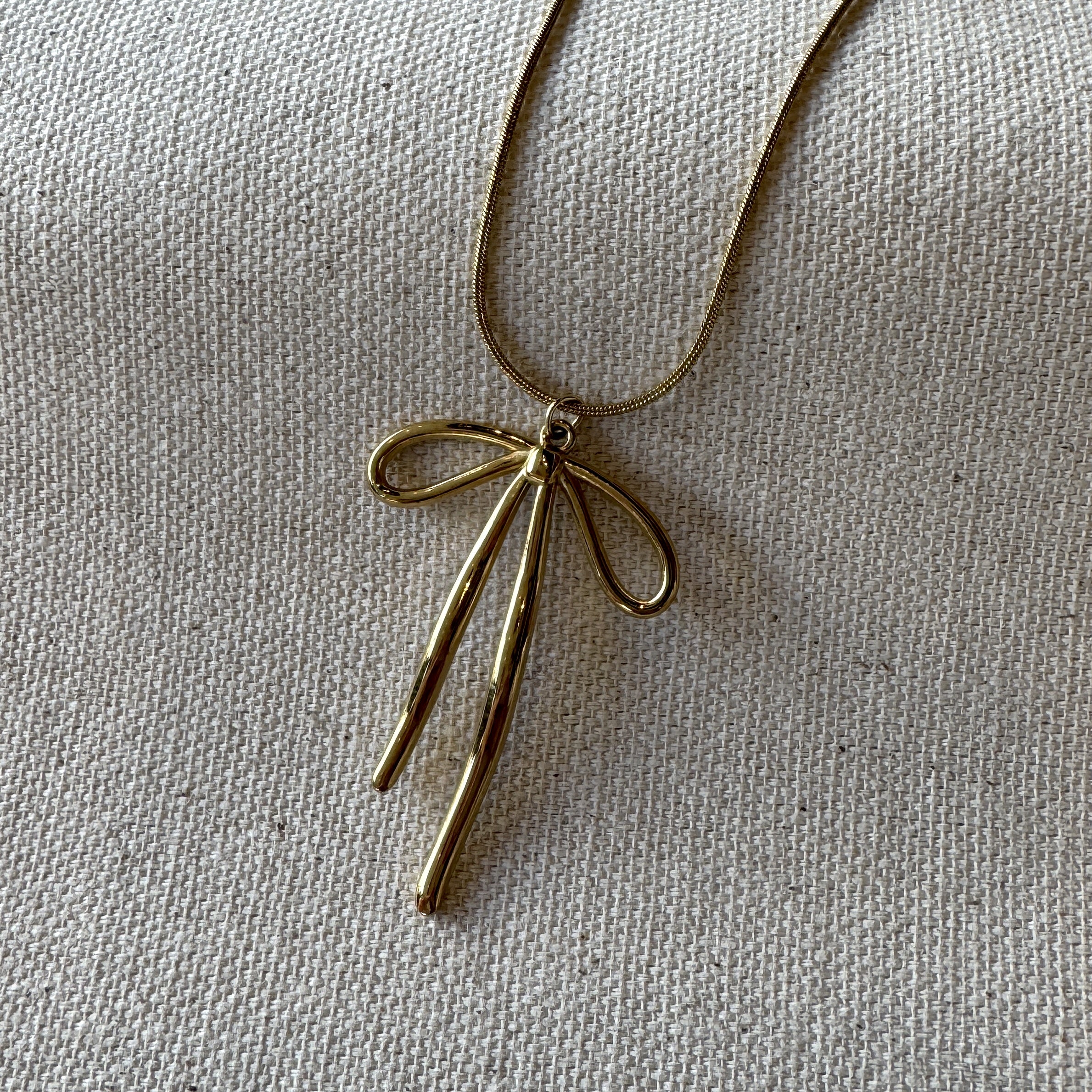Necklace - Bow pendant measures 4.5cm. Fastens with a lobster clasp. Why we love our Stainless steel jewellery: The perfect material for everyday jewellery, Stainless steel is a strong metal and is naturally resistant to scratches. It is also resistant to rust and oxidation, so it doesn't require the upkeep of other metals and won't tarnish with wear making it shower proof, sweat proof, beach proof, life proof!