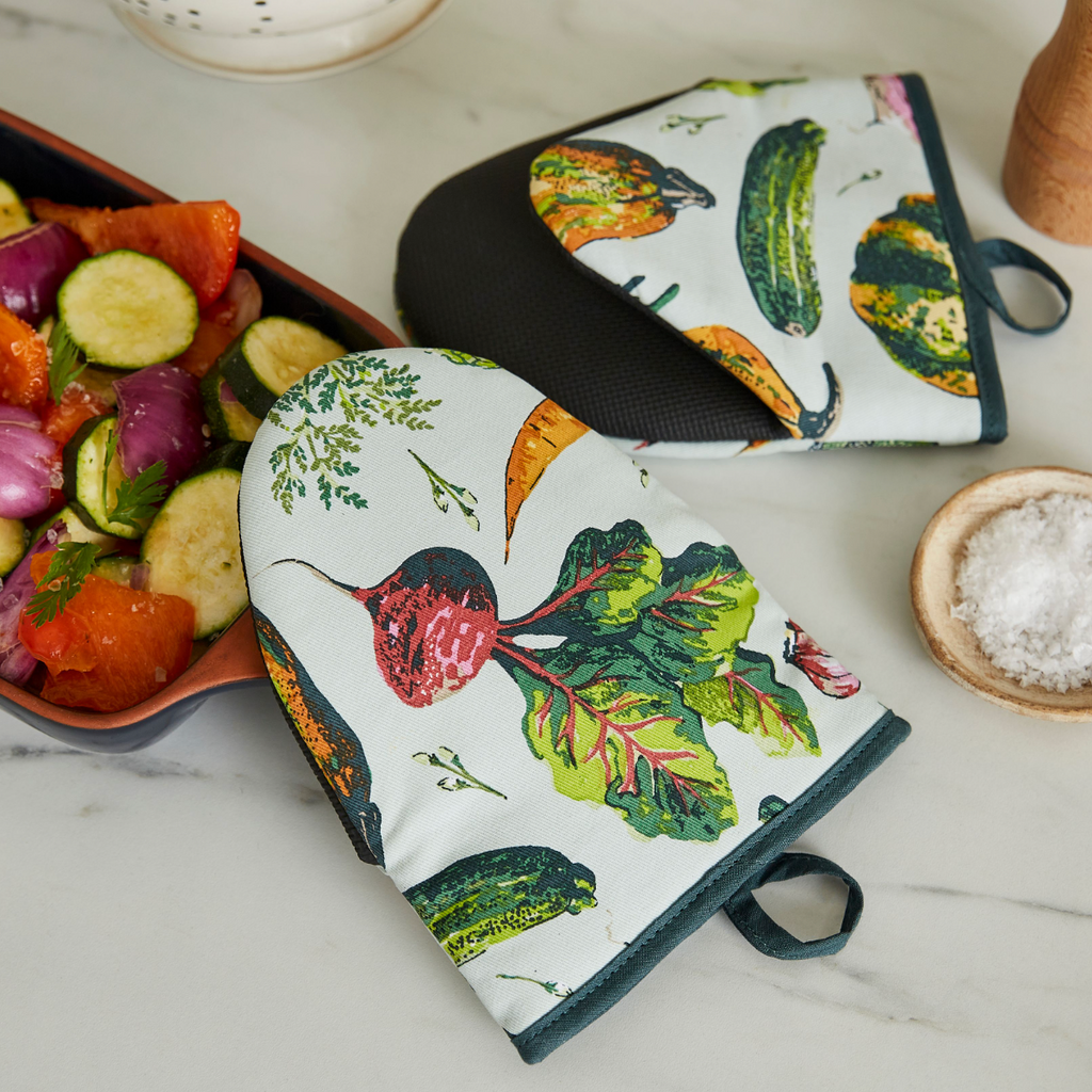Inspired by vintage horticultural drawings, this design blends nourishing greens with an earthy autumn palette. Crafted with care, the gloves feature a neoprene coating for excellent grip and heat protection.