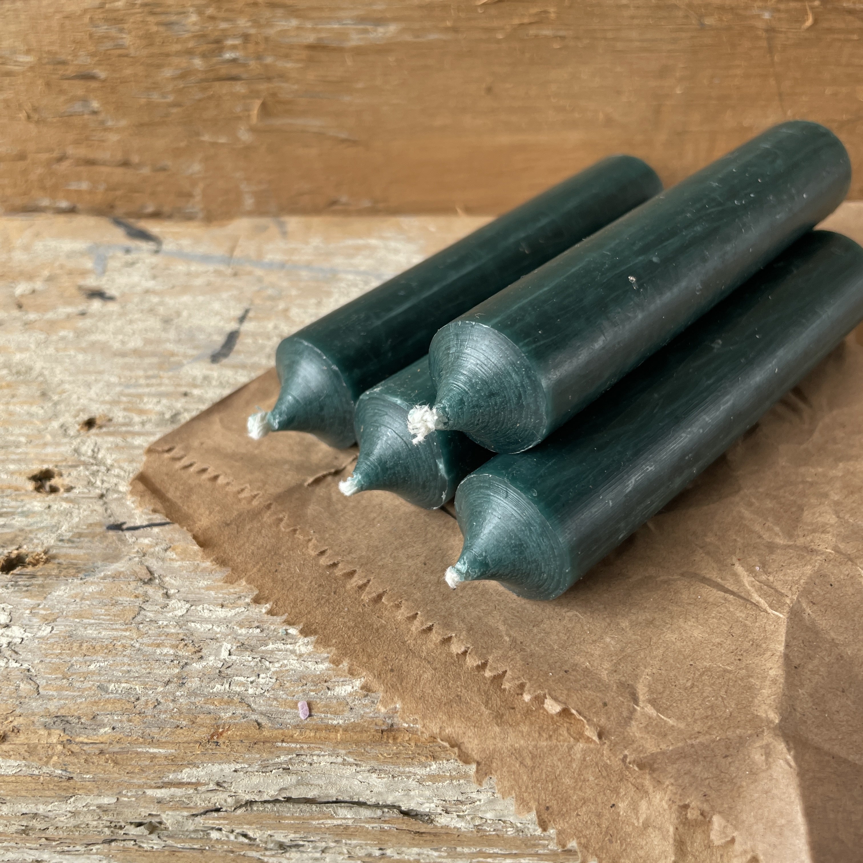 Pack 4 Short Dinner Candles - Dark Green (H10cm)