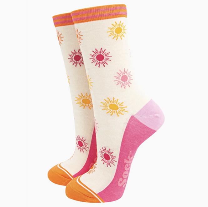 Made from breathable bamboo, these retro-inspired checked ankle socks showcase a playful suns pattern. Eco-friendly and incredibly soft, they offer a luxurious feel. The striped scalloped cuff adds the perfect touch for a comfortable fit.