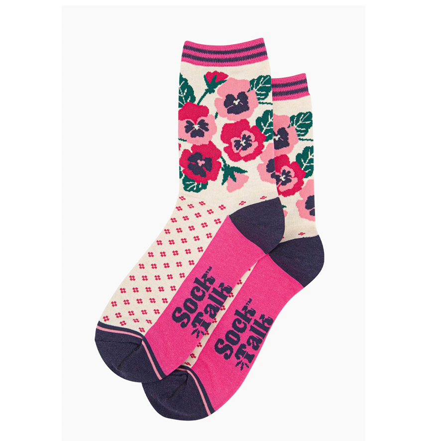 Pair of Bamboo Socks - Pansies, Cream & Pink