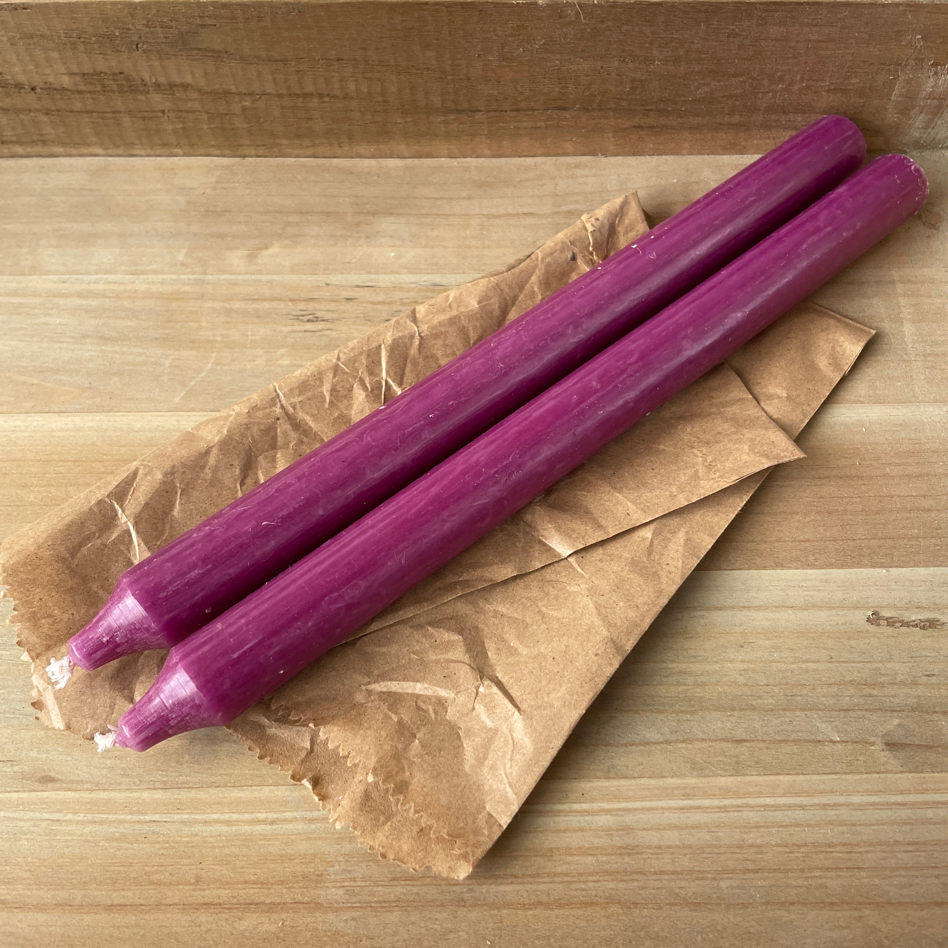 Pair of Tall Rustic Dinner Candles H29cm - Heather Purple