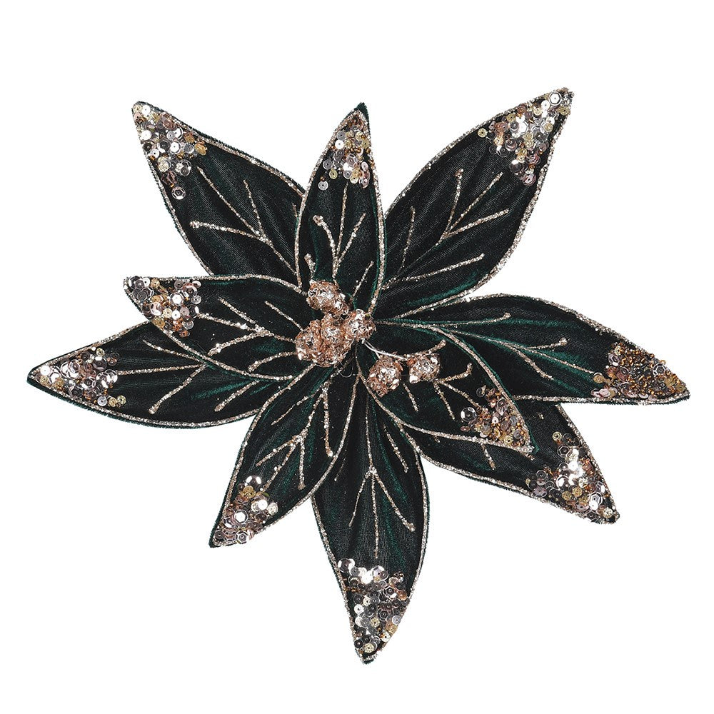Emerald and Gold Glitter Poinsettia - Flower on Clip, 33cm