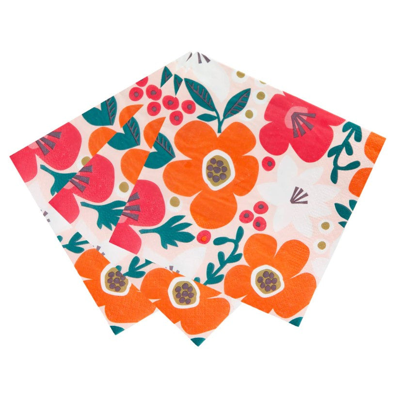 Add these Pink And Orange Floral Paper Napkins paper napkins to your tablescape for an instant injection of vibrant happy floral colour.