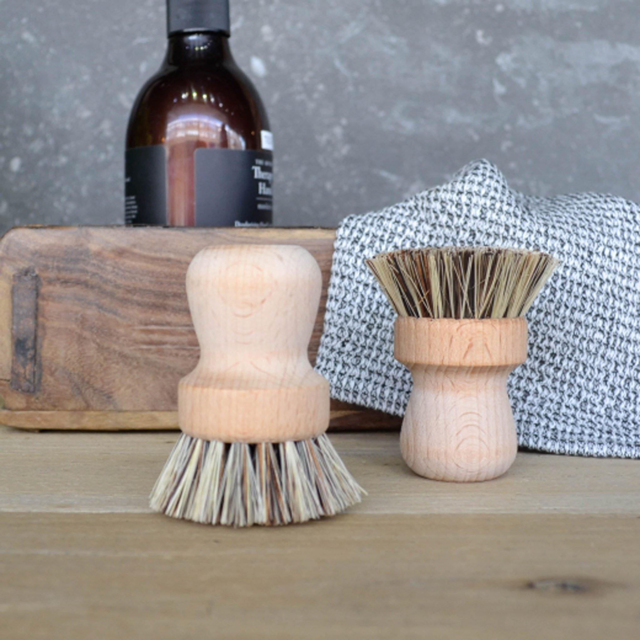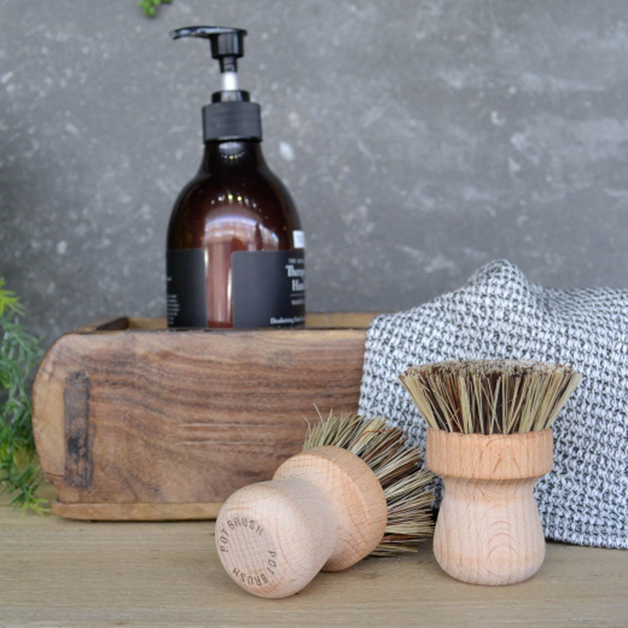 This compact little pot brush has a lovely comfortable wooden handle and stiff plant fibre bristles to remove stubborn dirt, it gives a really satisfying clean. It will become a sink-side favorite.