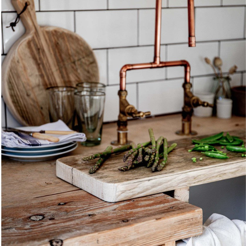 Crafted from reclaimed wood, each board is one-of-a-kind, with unique variations in color and texture. Full of character, this versatile piece can be used as a bath board, serving board, or chopping board. Practical and beautiful – how would you use yours?