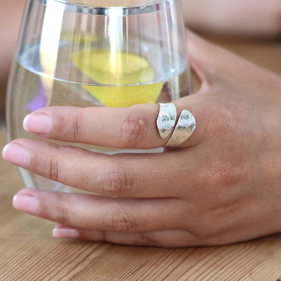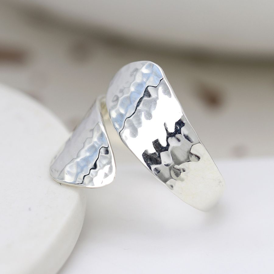 A contemporary classic, Ring - Sterling Silver Cross Over features a sterling silver open wrapped ring with a cross over design and hammered finish.