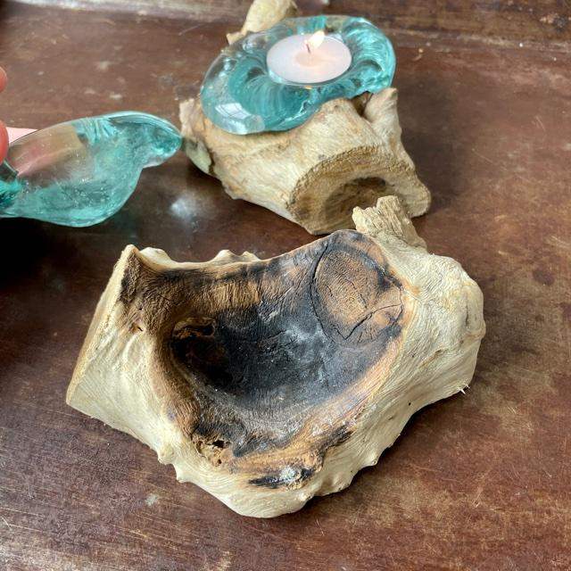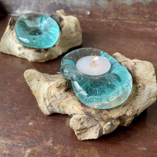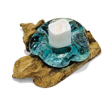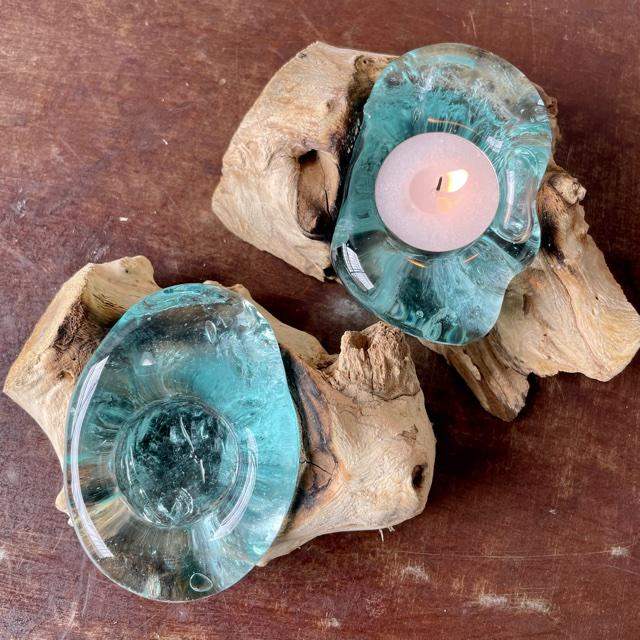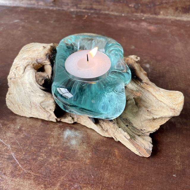 Teak Root with Glass Tea Light Holder