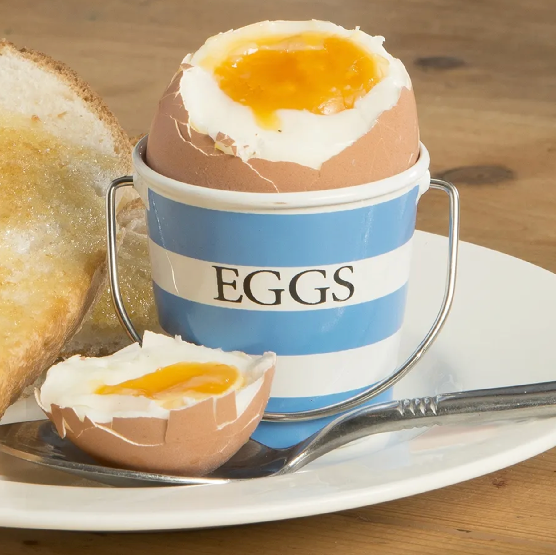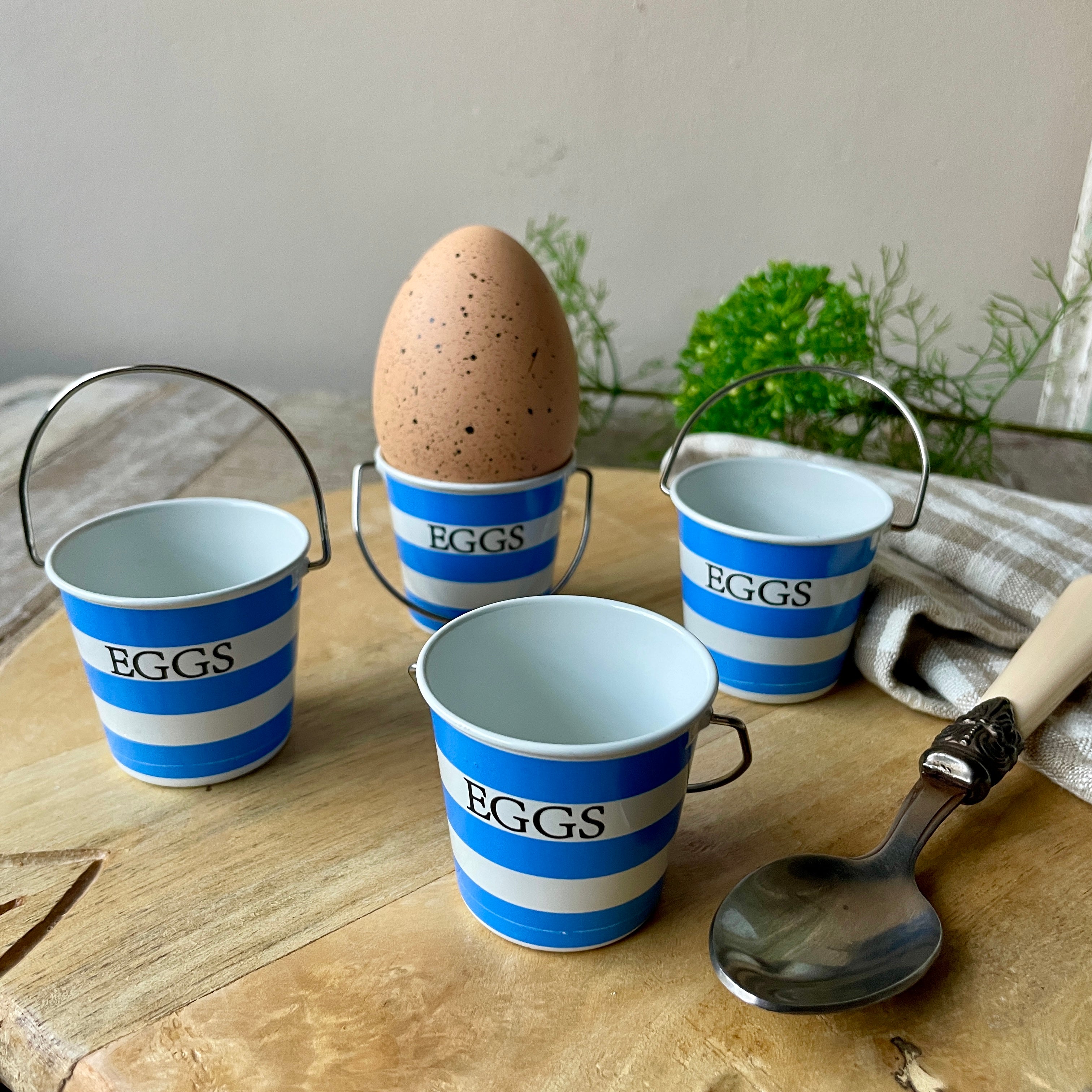 Set of 4 Egg Cups - Blue & White Stripe Pail Bucket - retro in style, these cute little bucket egg cups will add instant cottagecore nostalgia to your breakfast table.