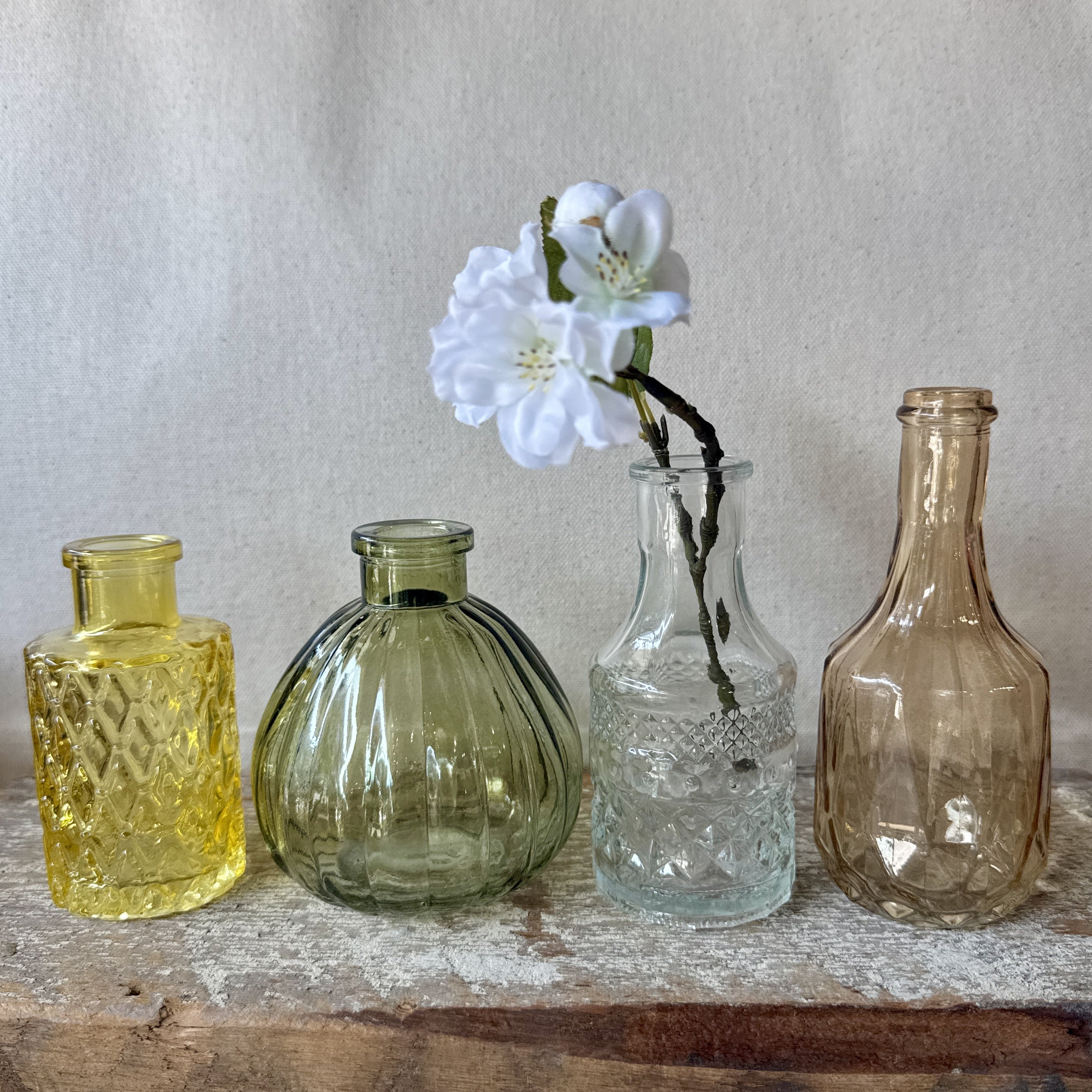 Add a cheerful touch to your home with this vibrant set of four vases - perfect for spring blooms, garden stems, or dainty flower arrangements. Whether displayed together or scattered throughout your space, these colourful glass vases bring instant charm and a fresh, uplifting feel to any room. Ideal for brightening up windowsills, shelves, or tables with a pop of seasonal colour.