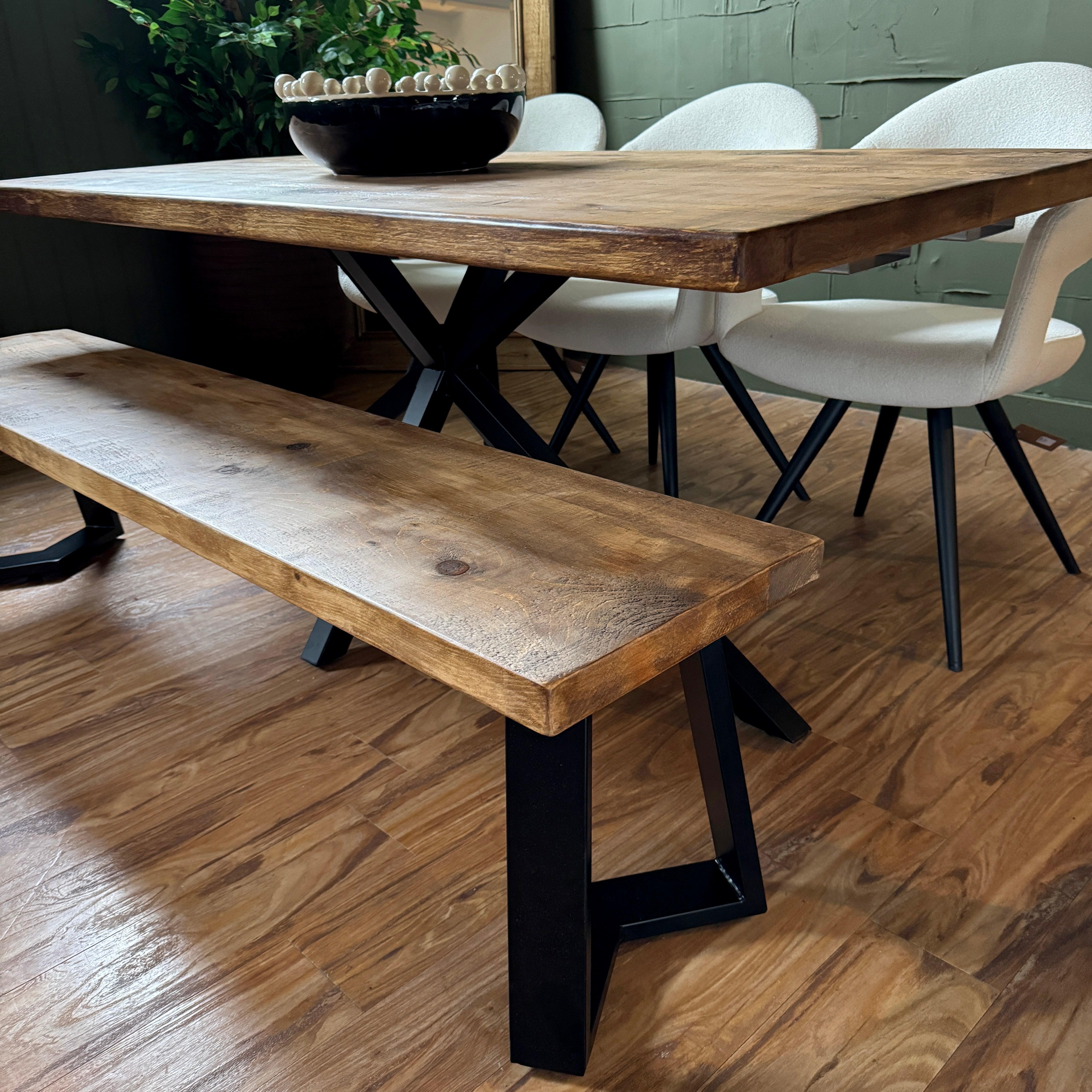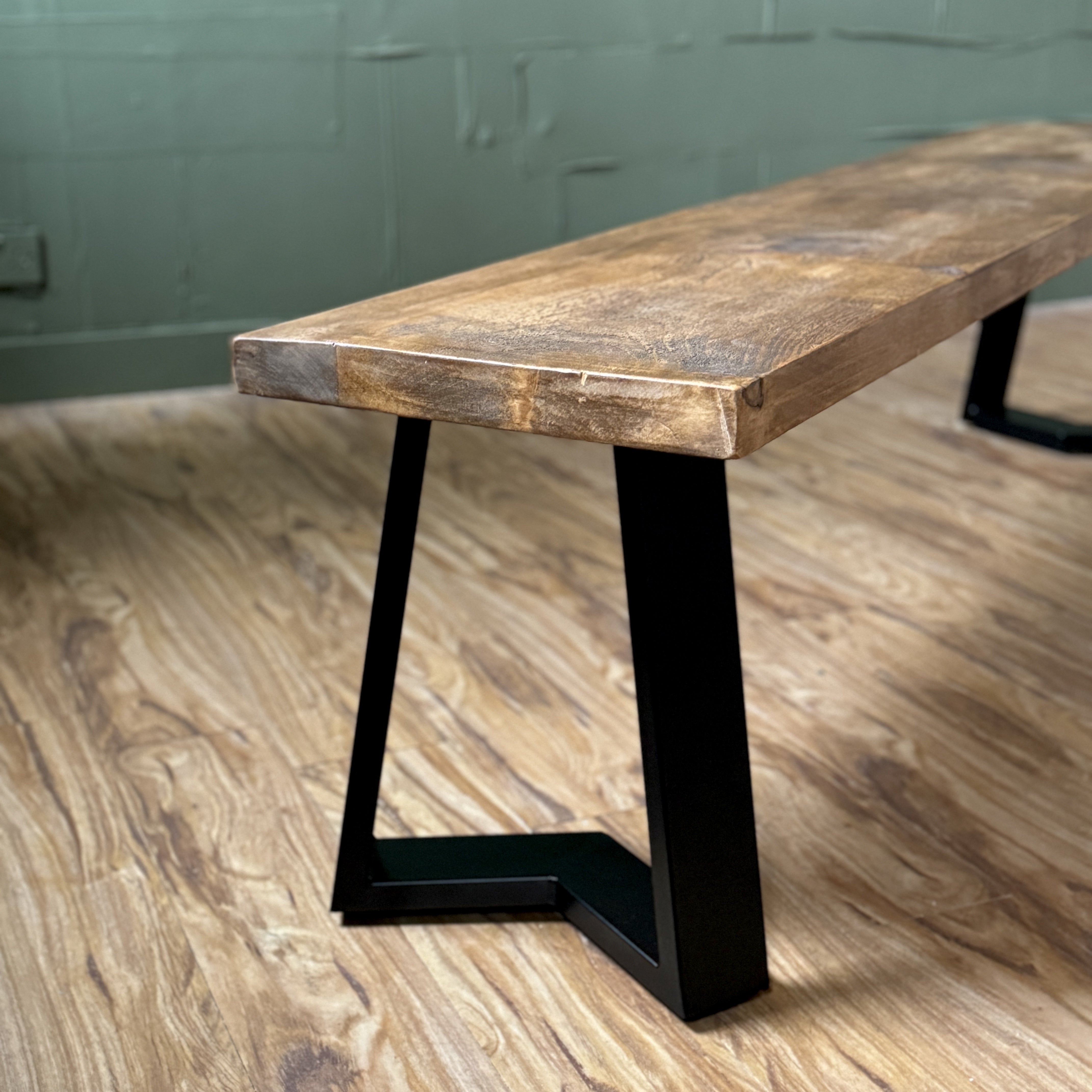 Sherwood Bench - Black Metal Legs - Brown Waxed / 4ft Back in stock soon, contact shop for details.