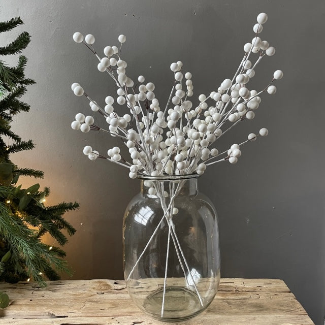 Lovely, White Snow Berry Stem, bursting with shiny white berries. Perfect to add to a garland or wreath, or even pushed into your Christmas Tree Branches.