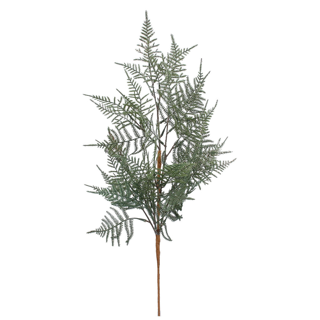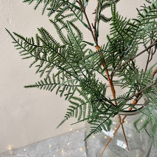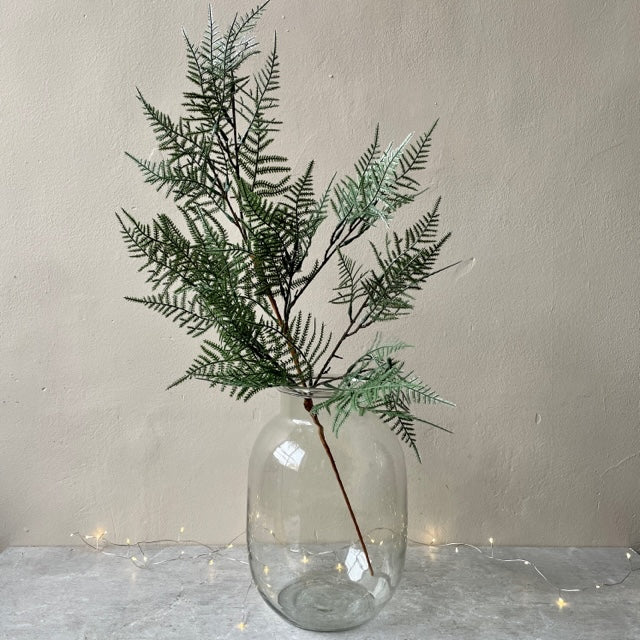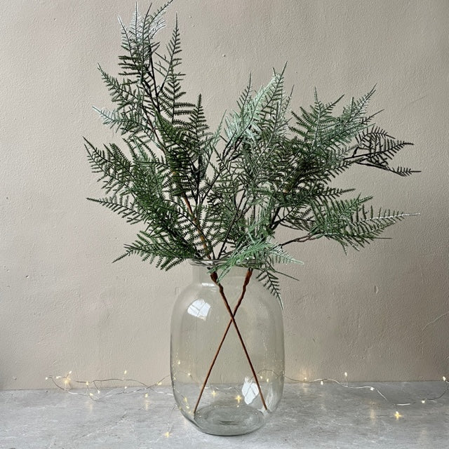 Stem - Glitter Maidenhair Fern is a gorgeous festive faux fern stem which will add interest and interest drama to any floral arrangement. Wonderfully wispy, and gorgeous styled in a vase alone, this gently glittered stem is perfect to add a flourish to any garland or wreath too, why not get creative?