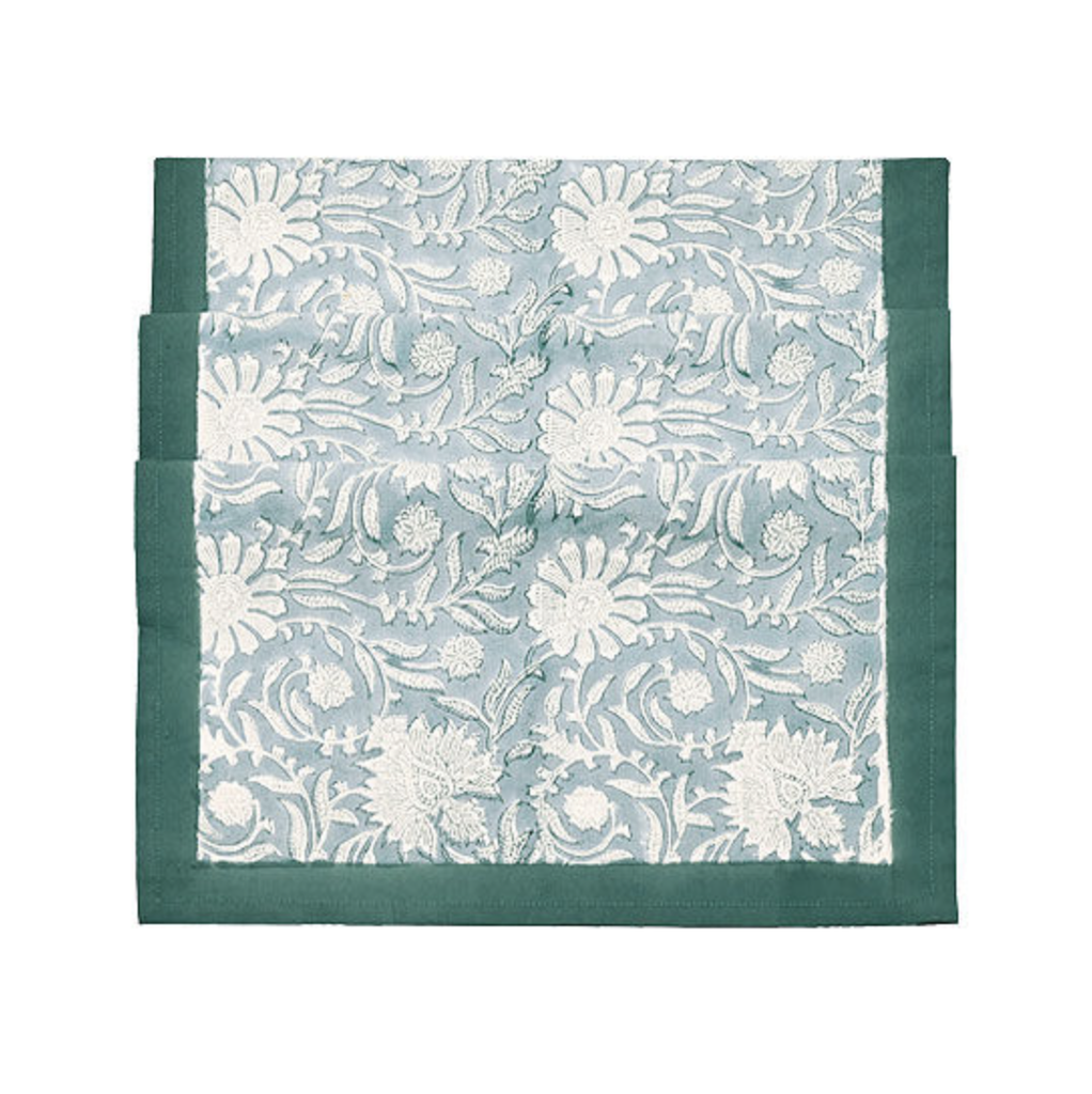 Table Runner - Elise Hand Block, Aqua. This beautiful bohemian table runner, with a bold contrast border measures 45x150cm