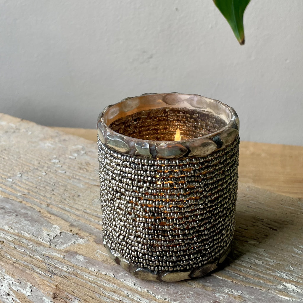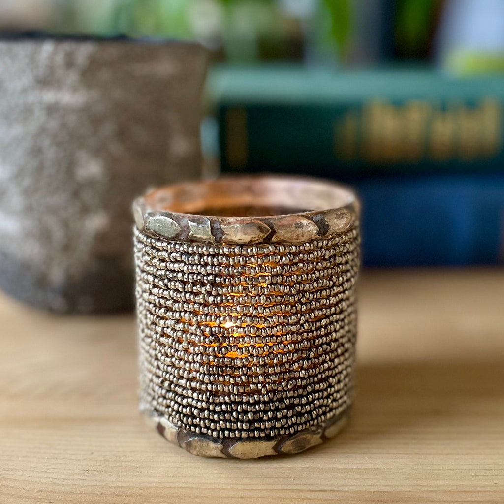 Tea Light Holder - Oxidised Copper Beads