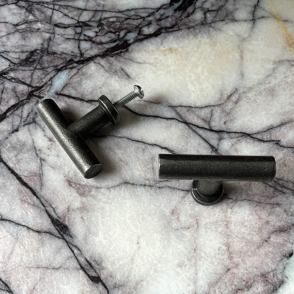 Cast iron T-shaped knobs will add an industrial touch to your drawers and cabinets.