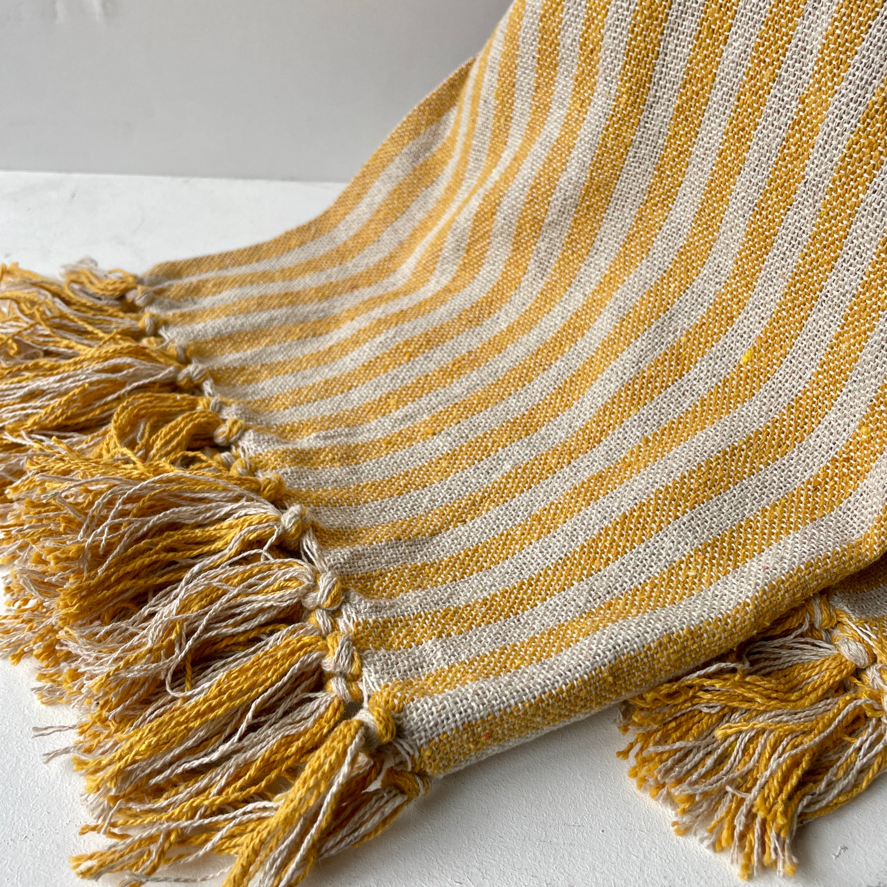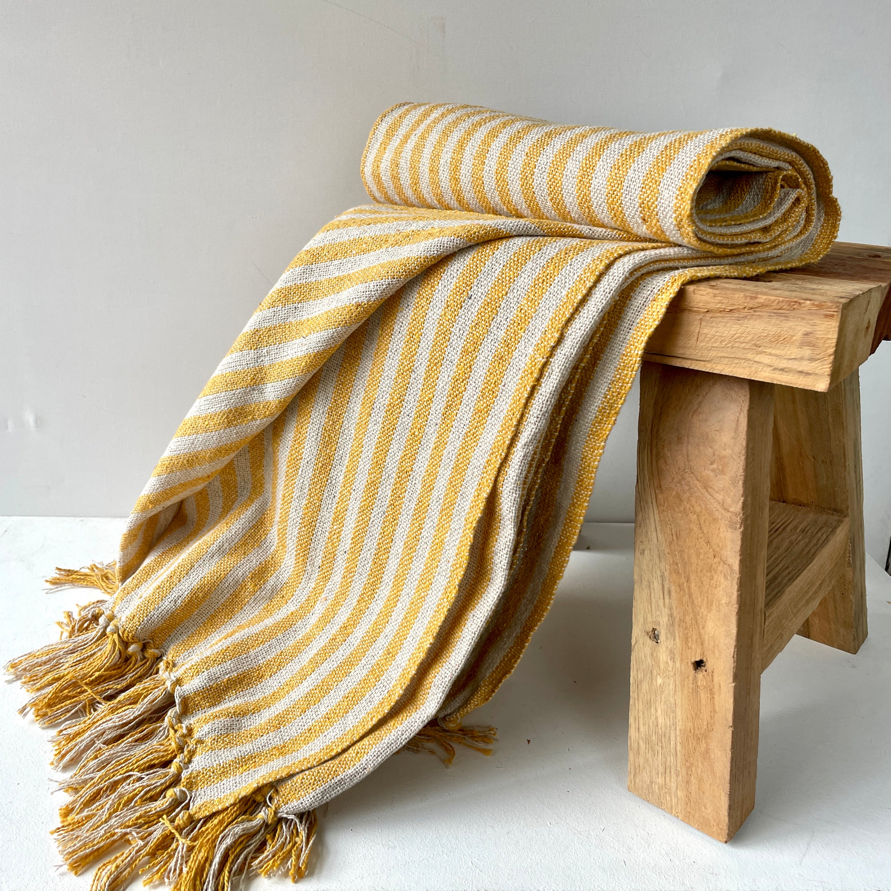 Bringing all the vibes of the British seaside to your interiors with this natural and mustard yellow striped throw.