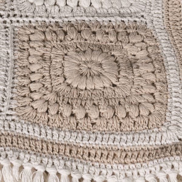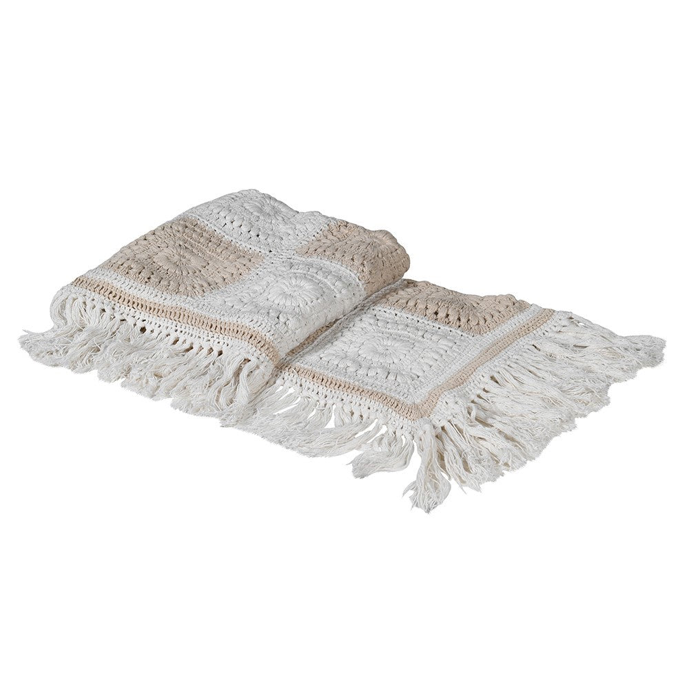 Throw - Natural Crochet with Fringe is a beautiful, natural bohemian throw. Cosy with a subtle hint of the scandi.