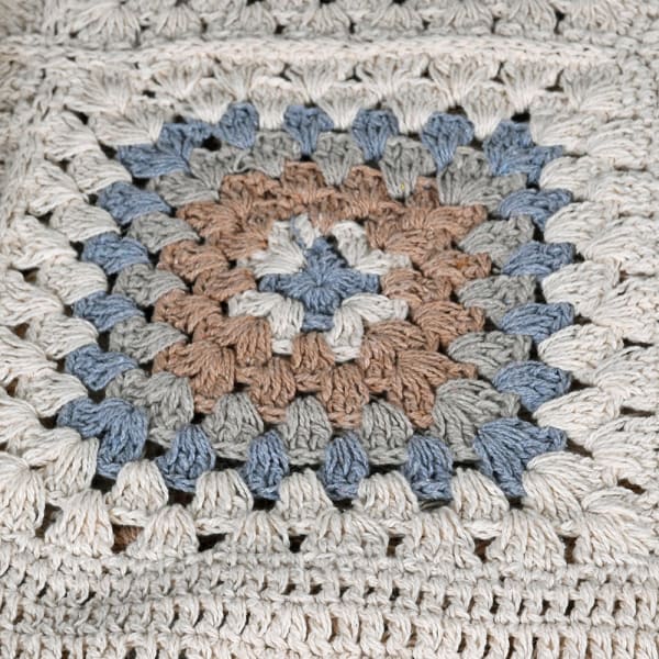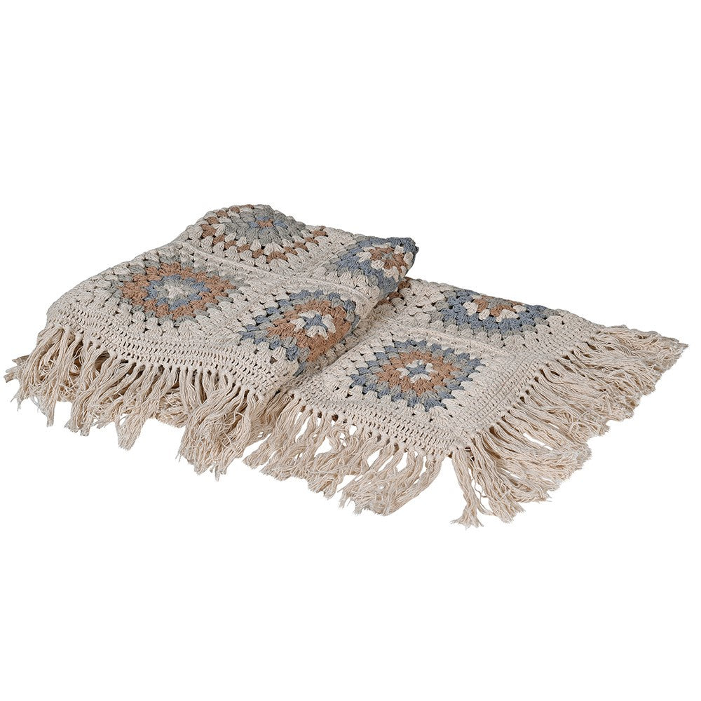 Throw - Pastel Block Crochet with Fringe is a beautiful, natural bohemian throw. Cosy with a subtle hint of the scandi.