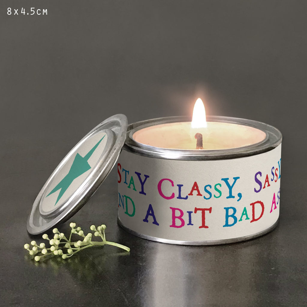 Tinned candle with an Sweet Orange scent. Detailed wrap with thoughtful words in a type writer style font. The perfect gift for yourself or a special someone.