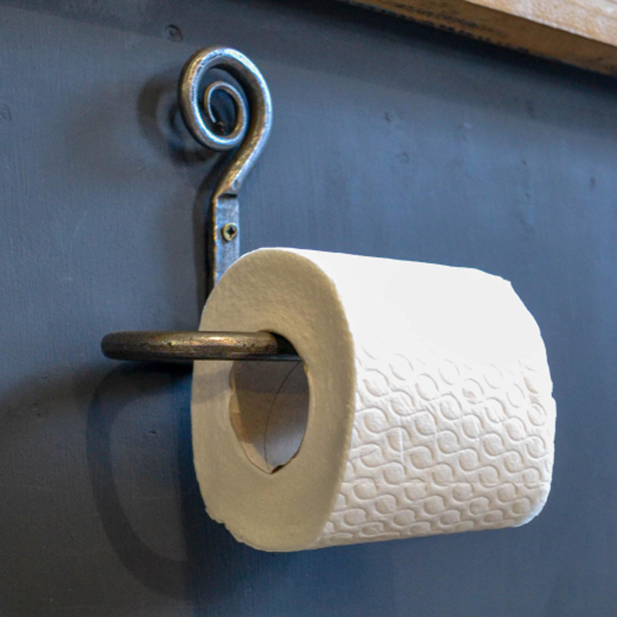 Curly Tail Wall Hanging Toilet Roll Holder measures 15cm wide. 100% Cast Iron