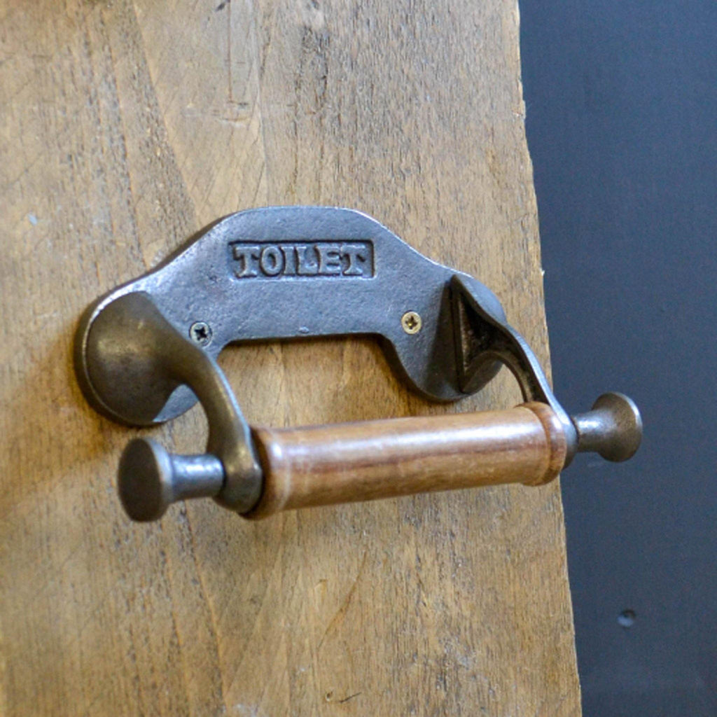Architectural salvage style utility homewares are timeless pieces within the home. This toilet roll holder is simplistic in design and features the word ‘Toilet’ cast into the metal back plate and sturdy sides. To complete the heritage detailing it comes complete with a polished wooden cylinder to hold your toilet roll securely.