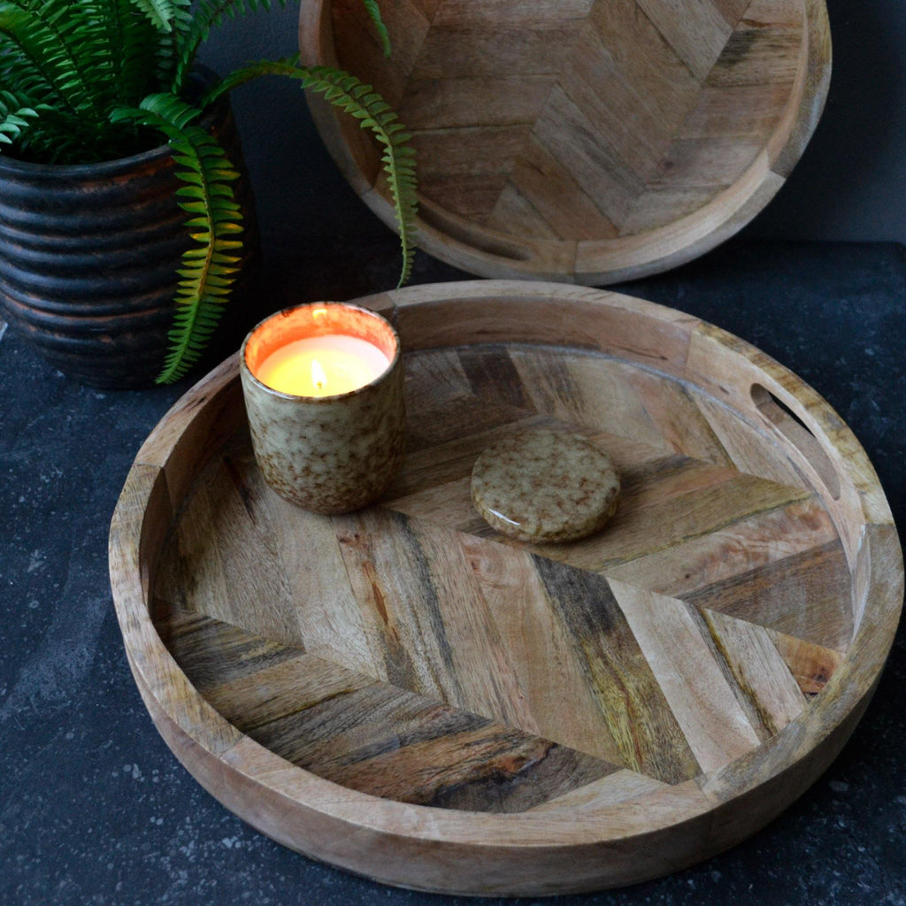 Our Round Wooden Herringbone tray is a stylish platter which will soon become a household favorite.