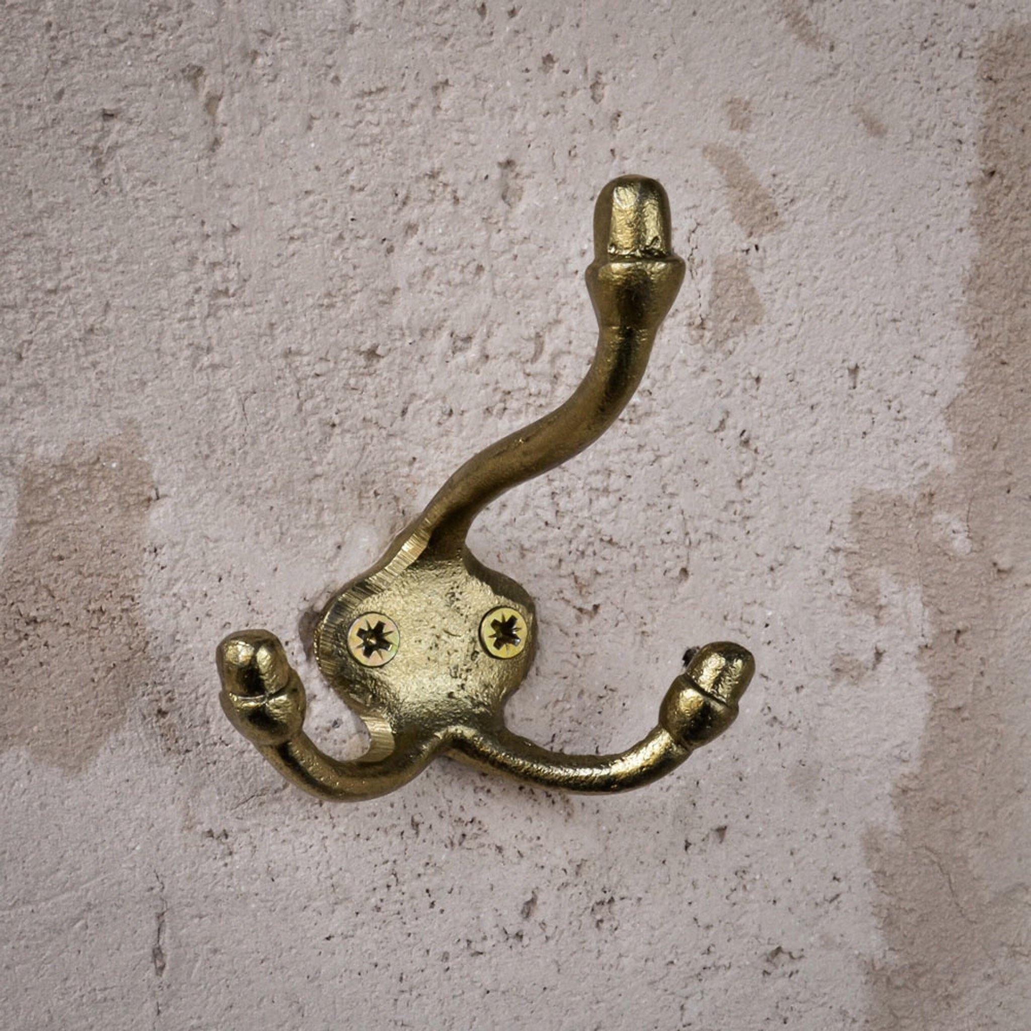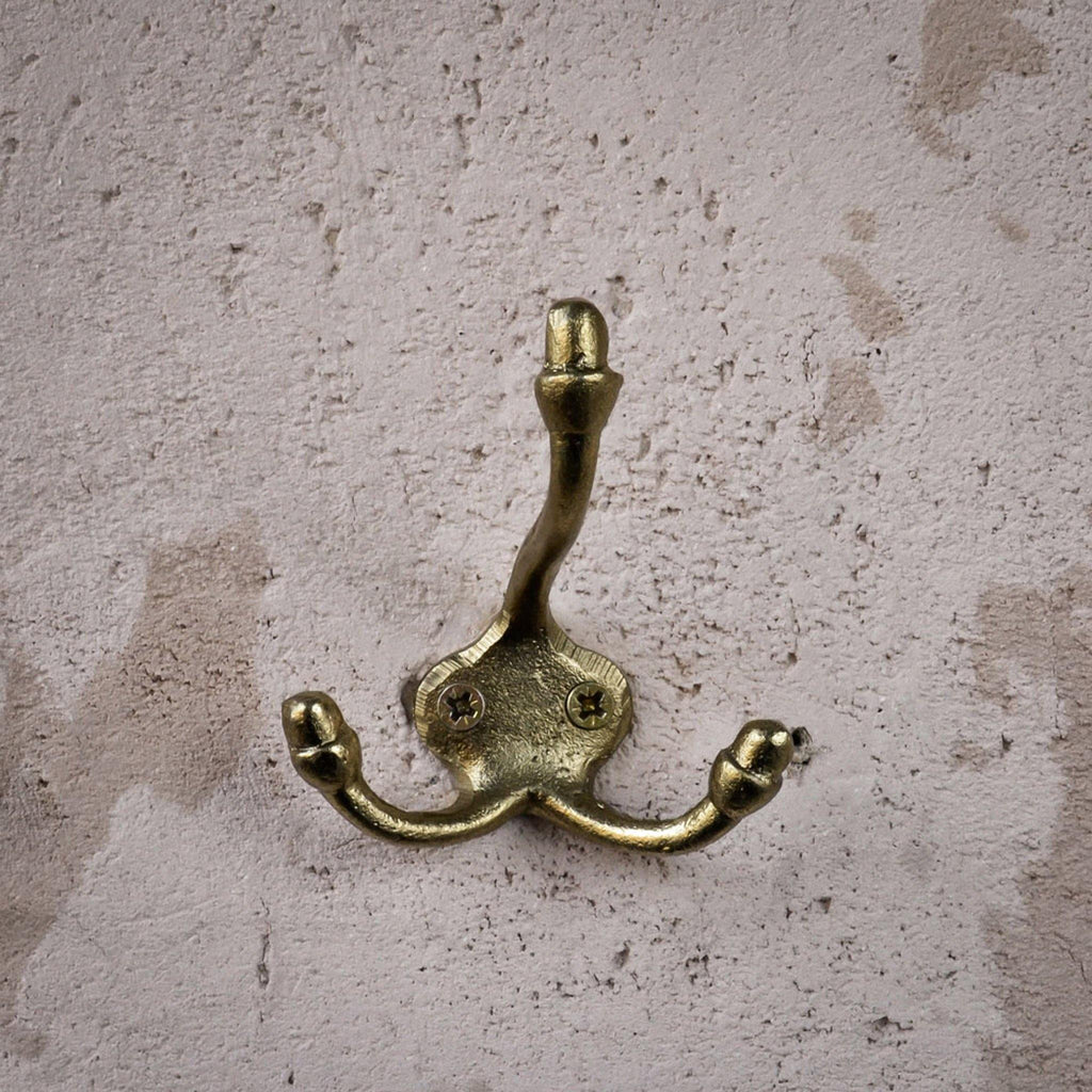 In a glamorous gold finish, this triple coat hook would be perfect for in the hallway, bathroom or bedroom. With three hooks with rounded, acorn like detailing at the ends,