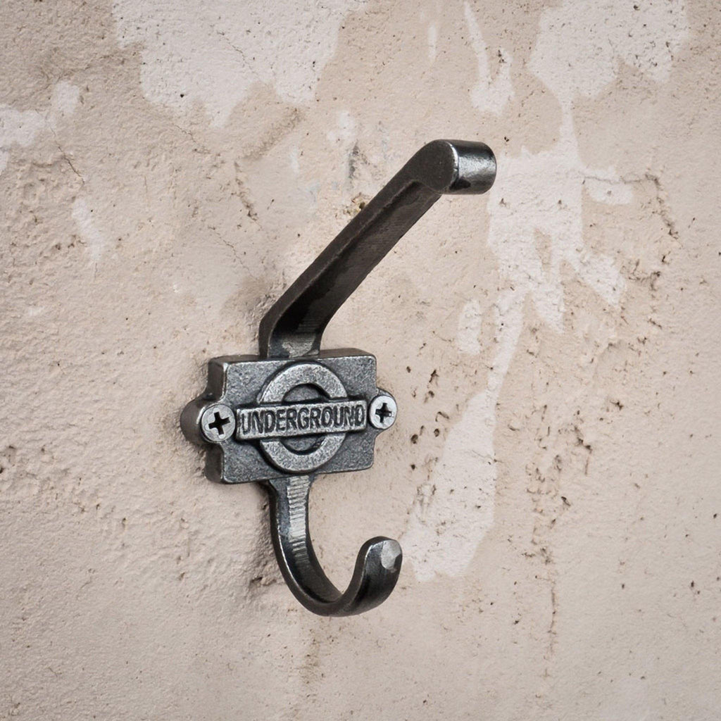 The undeground sign is a classic symbol of London and the UK. This double coat hook has a cast iron plaque featuring the London Underground logo and two hooks for easily hanging coats, scarfs or even dressing gowns.