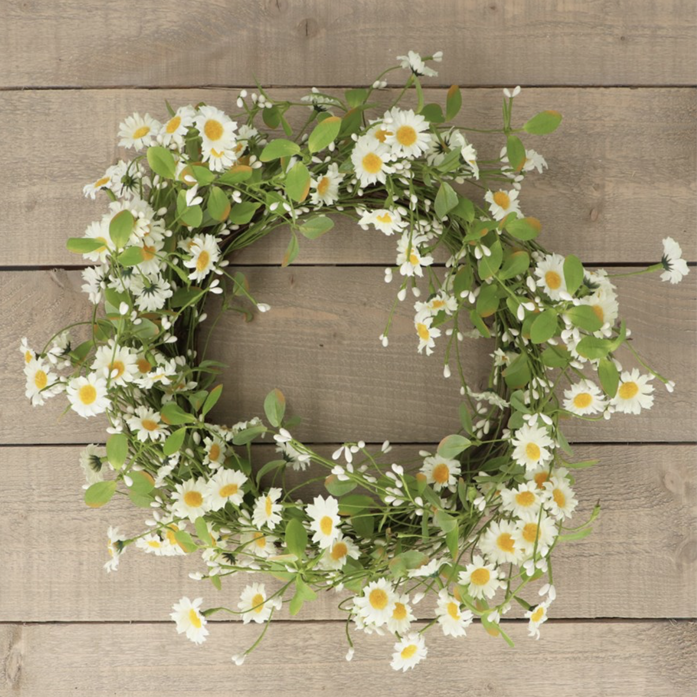This faux wreath features a mix of delicate white rudbekia flowers and leaft eucalyptus finished with realistic greenery. clustered generously on a spun twig base. This wreath will add a welcome spash of colour to your front door or any spot in your home that needs an injection of spring cheer.