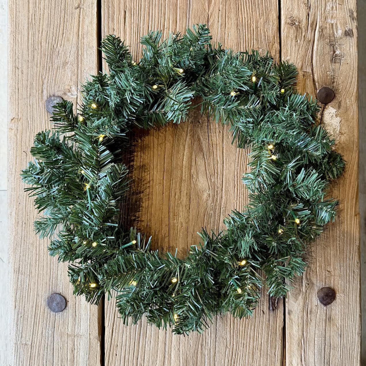 Green Fir Wreath with Battery Operated Firefly Lights– 60cm